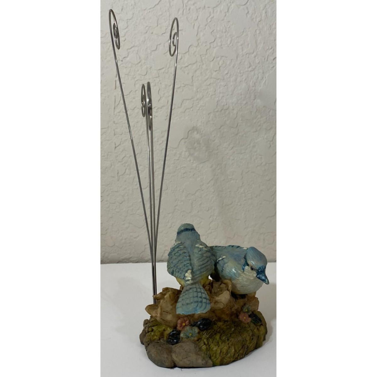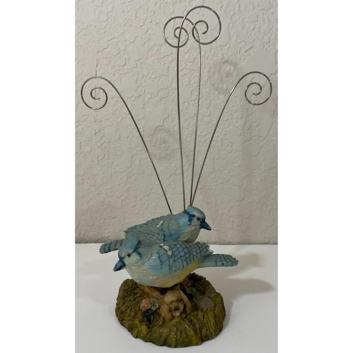 Vintage Blue Jays Figurine / Metal Wire Picture Holder Bird Flower Floral