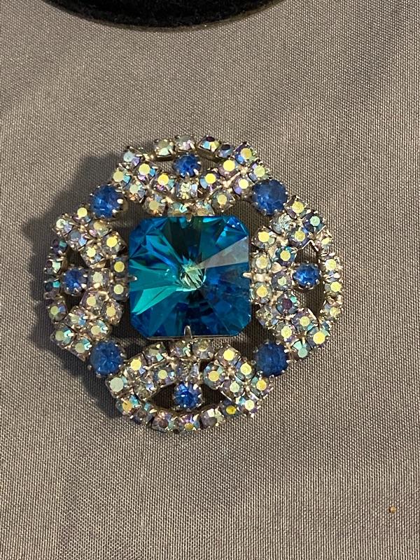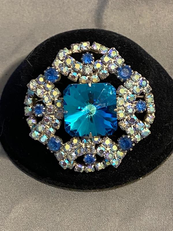 Vintage Blue Jewel Rhinestone Brooch YD#013-1120-00055