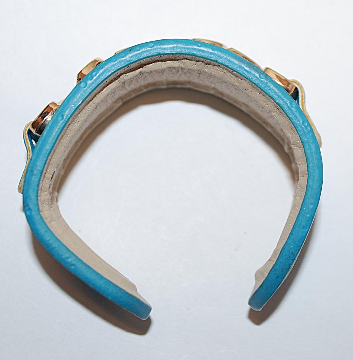 VINTAGE Blue Leather-Style CUFF BRACELET (2¼" Opening) with Silver Tone Chain Links