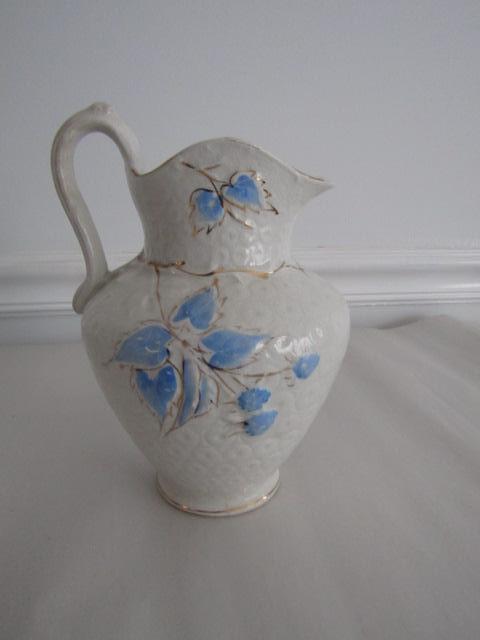 Vintage Blue Leaves Pitcher by The Wheeling Pottery Co.