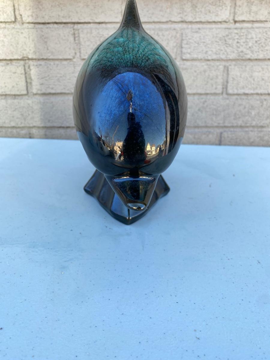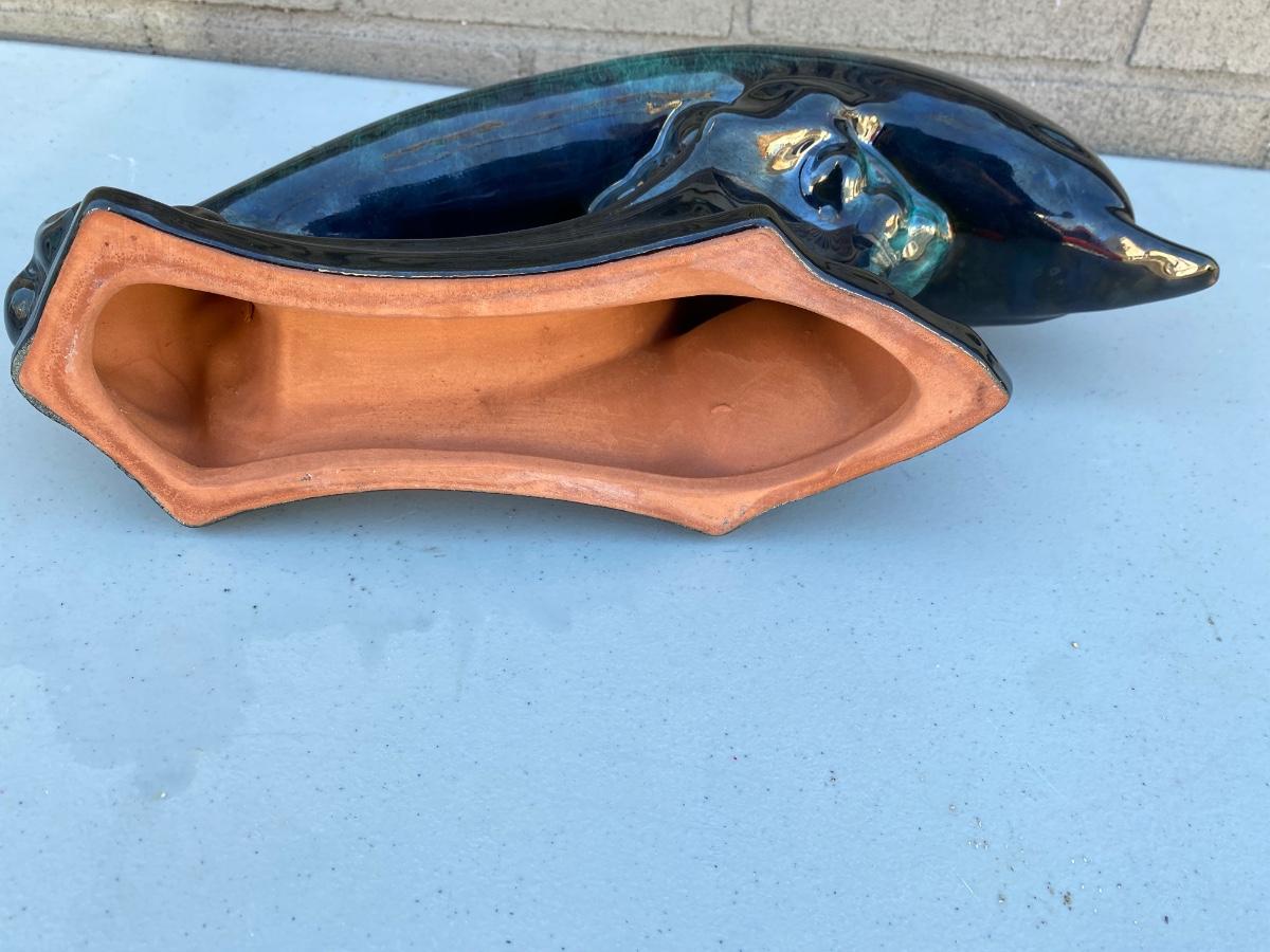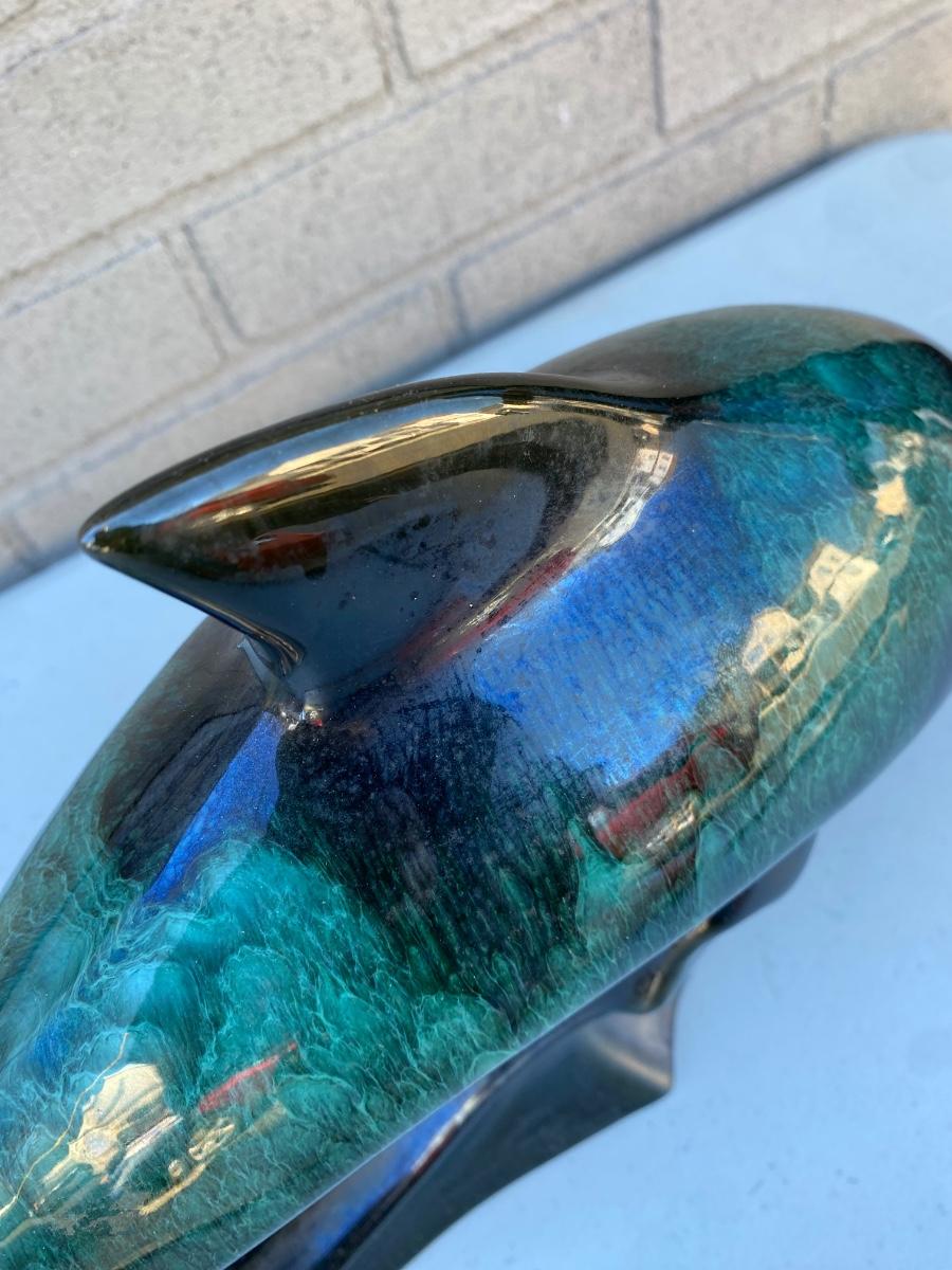 Vintage Blue Mountain Pottery Leaping Dolphin Figurine Black Green Glaze Ceramic. Red clay figurine drip glazed with rich sea green tones