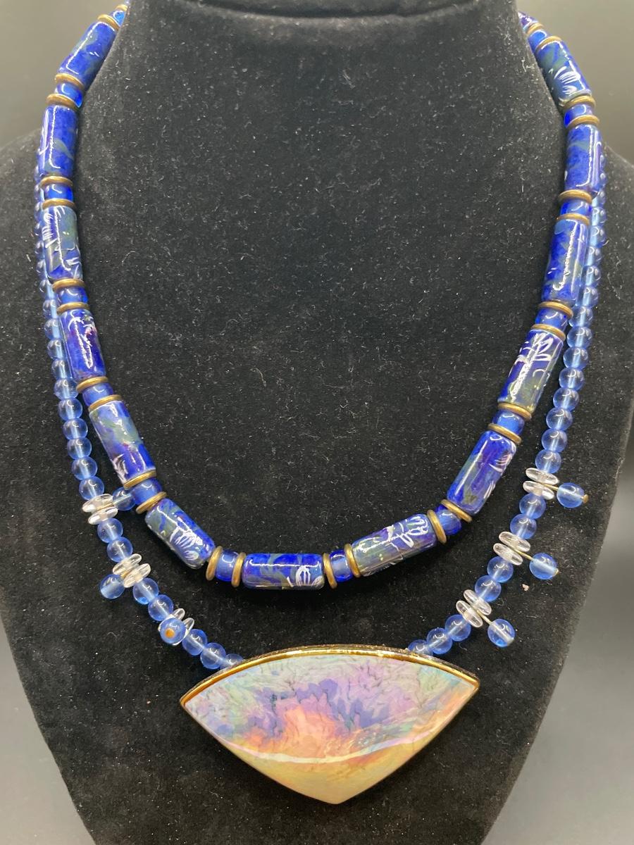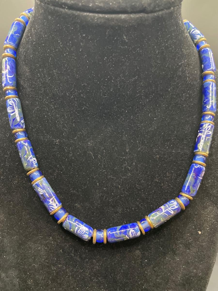 Painted blue necklace &