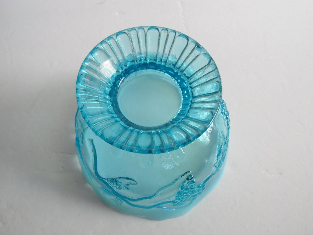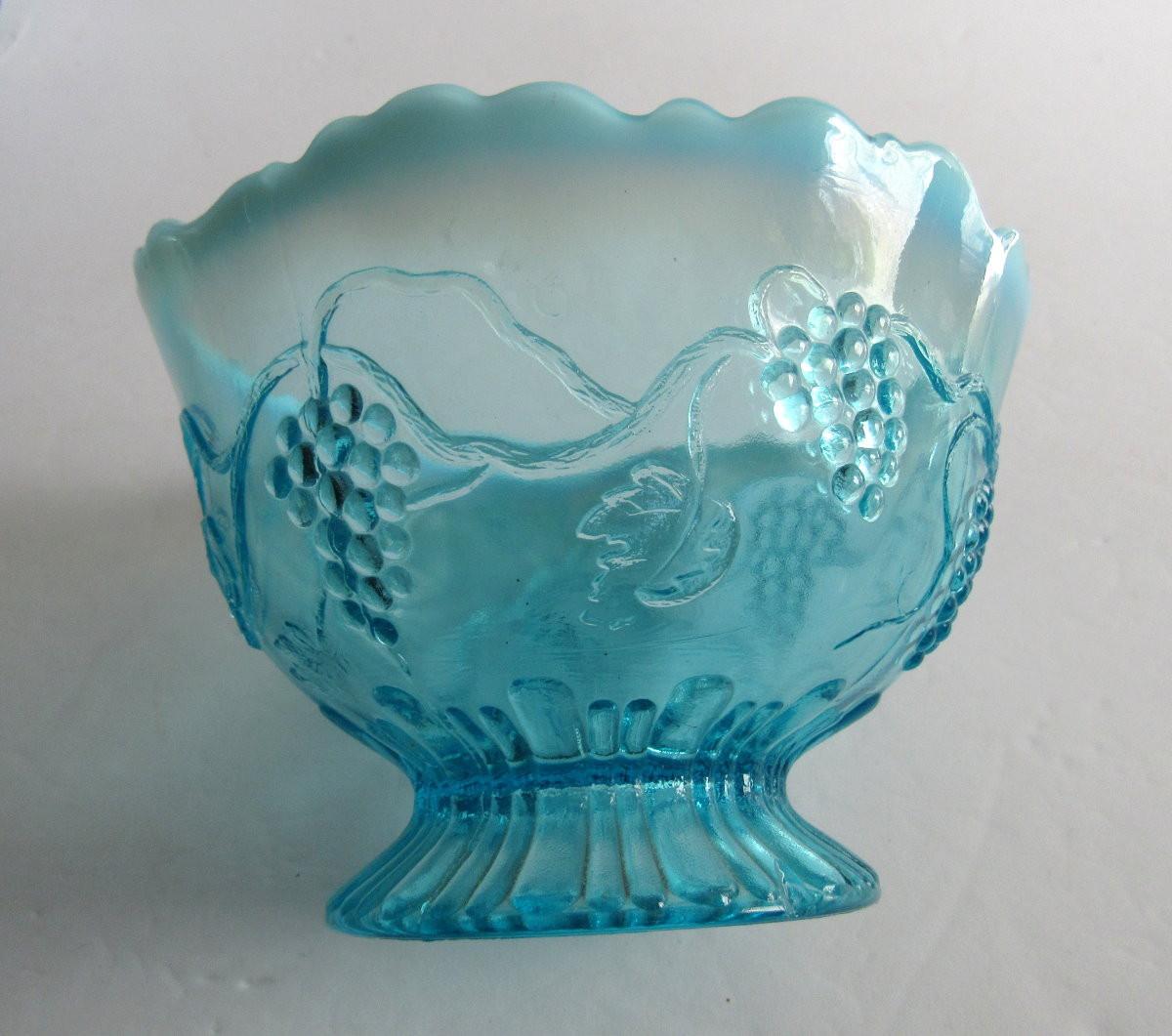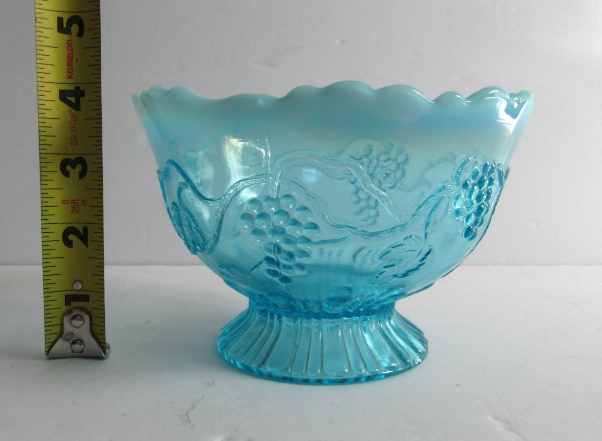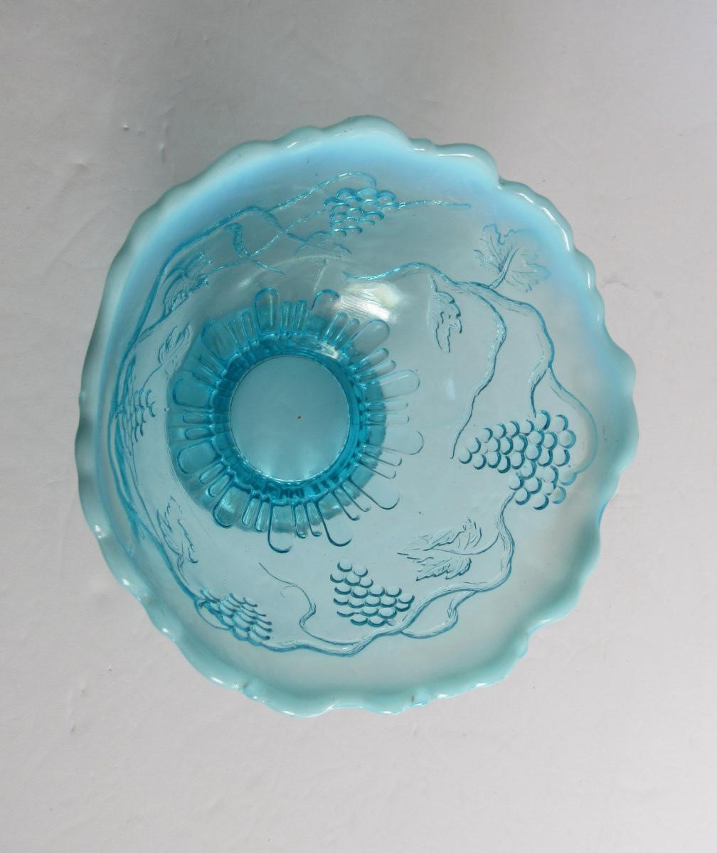 Vintage Blue Opalescent Footed Bowl, Grapes Theme