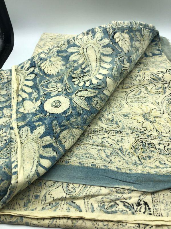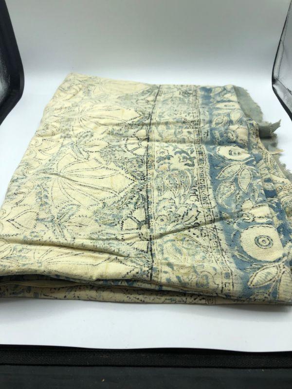 Vintage blue paisley patterned fabric. May be discolored along edges from storage. Exact length unknown, looks like a decent bundle.