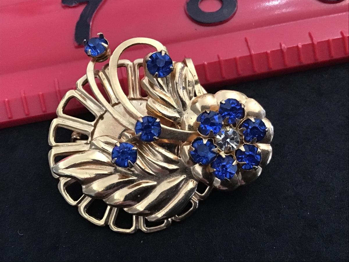 Vintage Blue Rhinestone Brooch