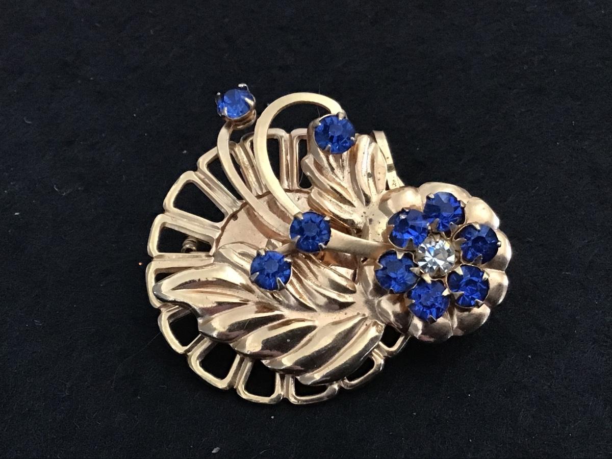 Vintage Blue Rhinestone Brooch
