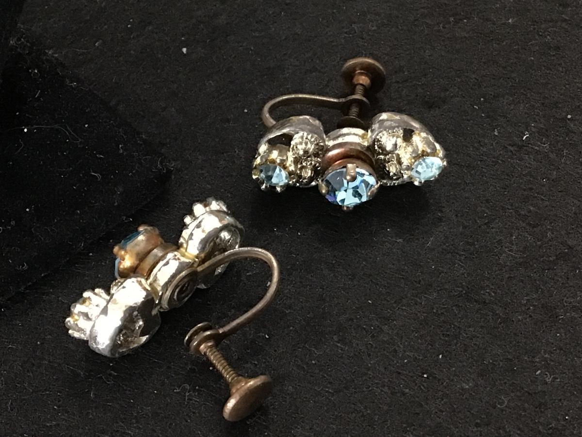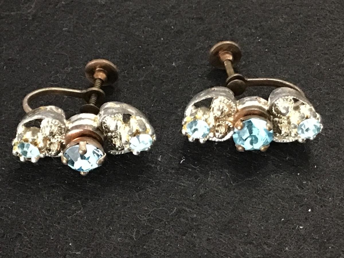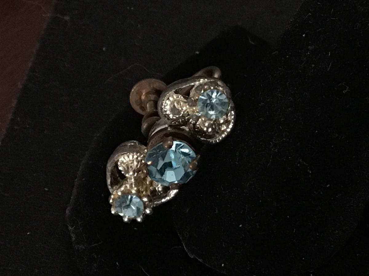 Vintage Blue Rhinestone Screwback Earrings