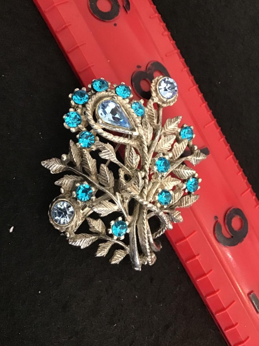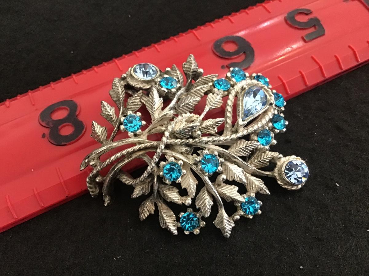 Vintage Blue Rhinestone Silver Tone Coro Brooch