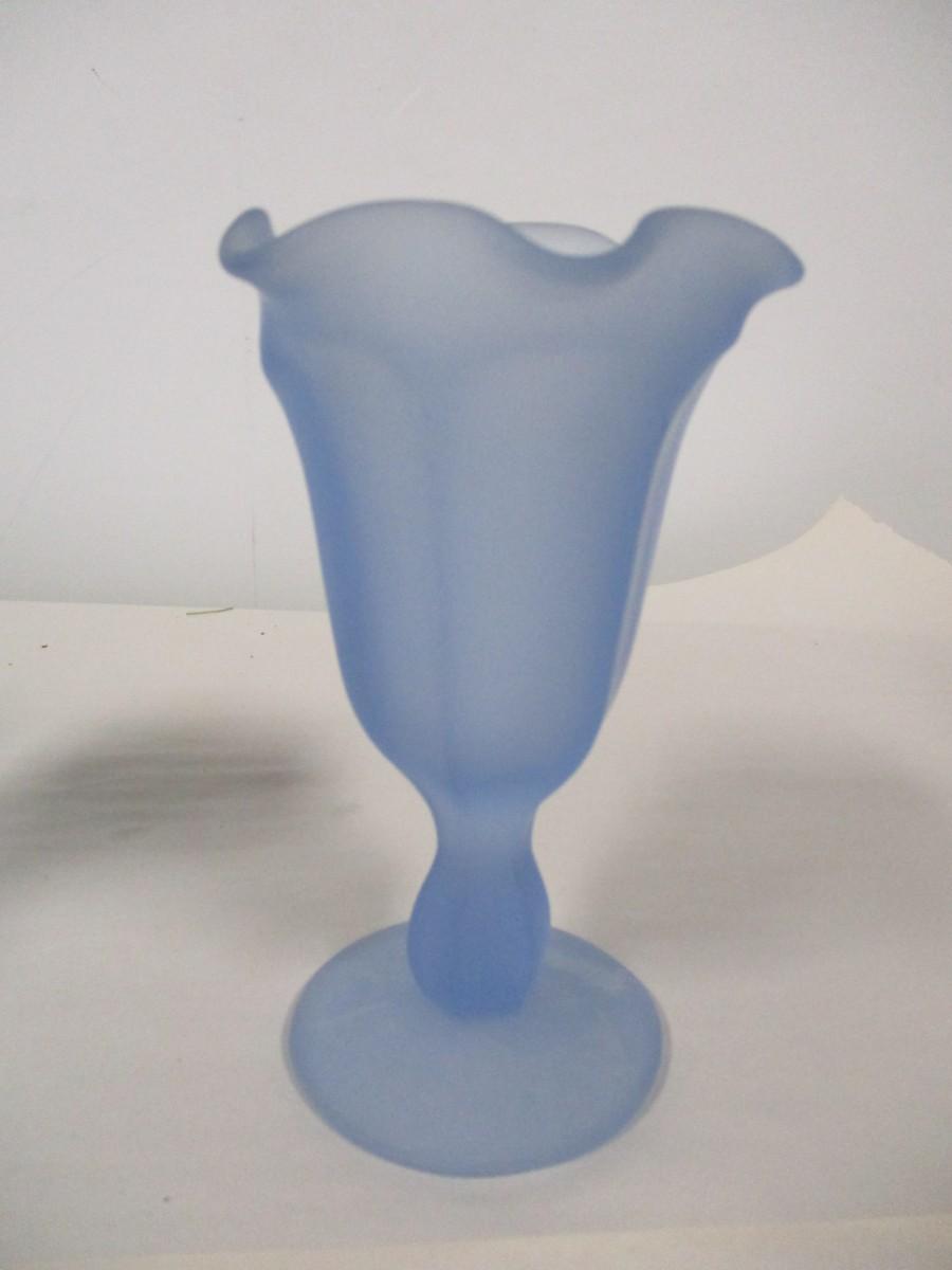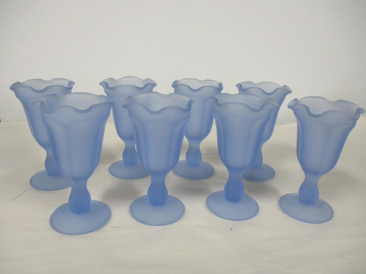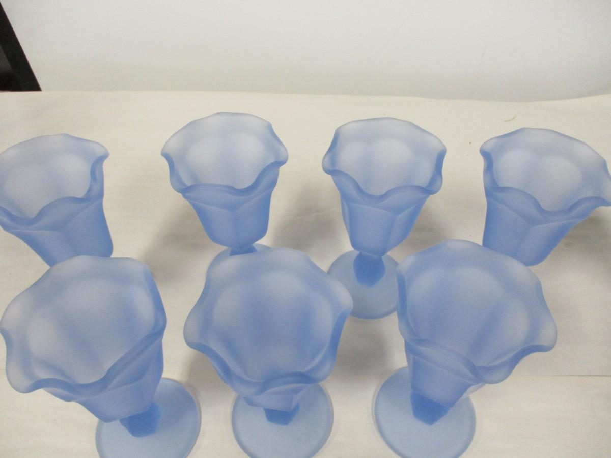 Vintage Blue Satin Frosted Ruffled Glasses