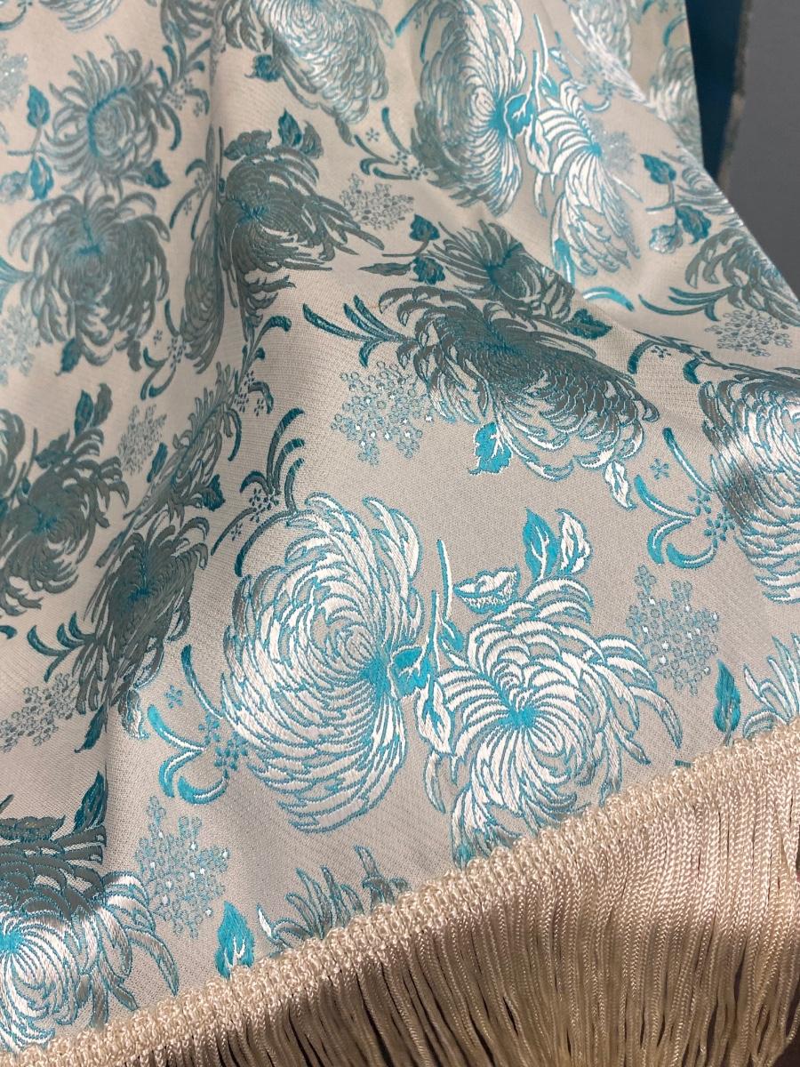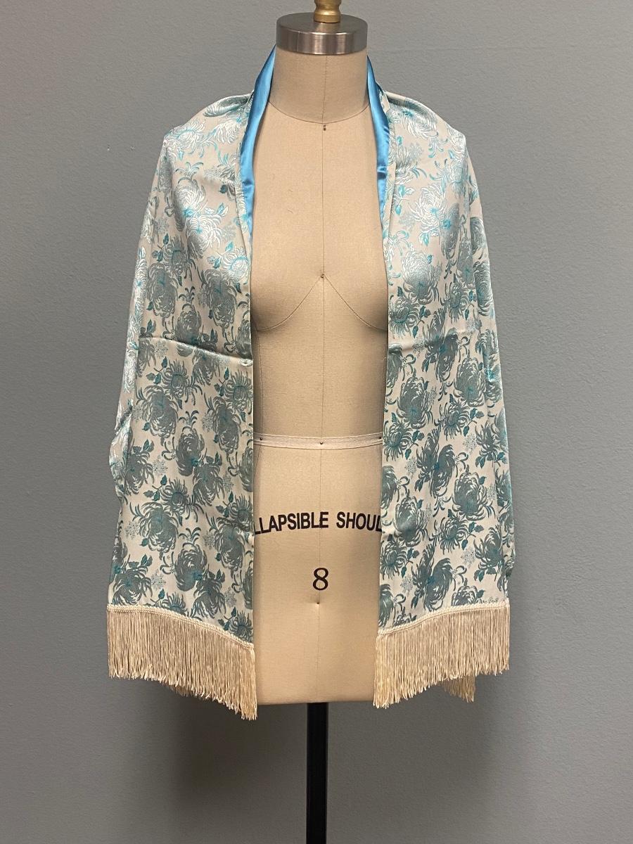 Vintage Blue Turquoise Hollywood Regency Satin Shawl Scarf