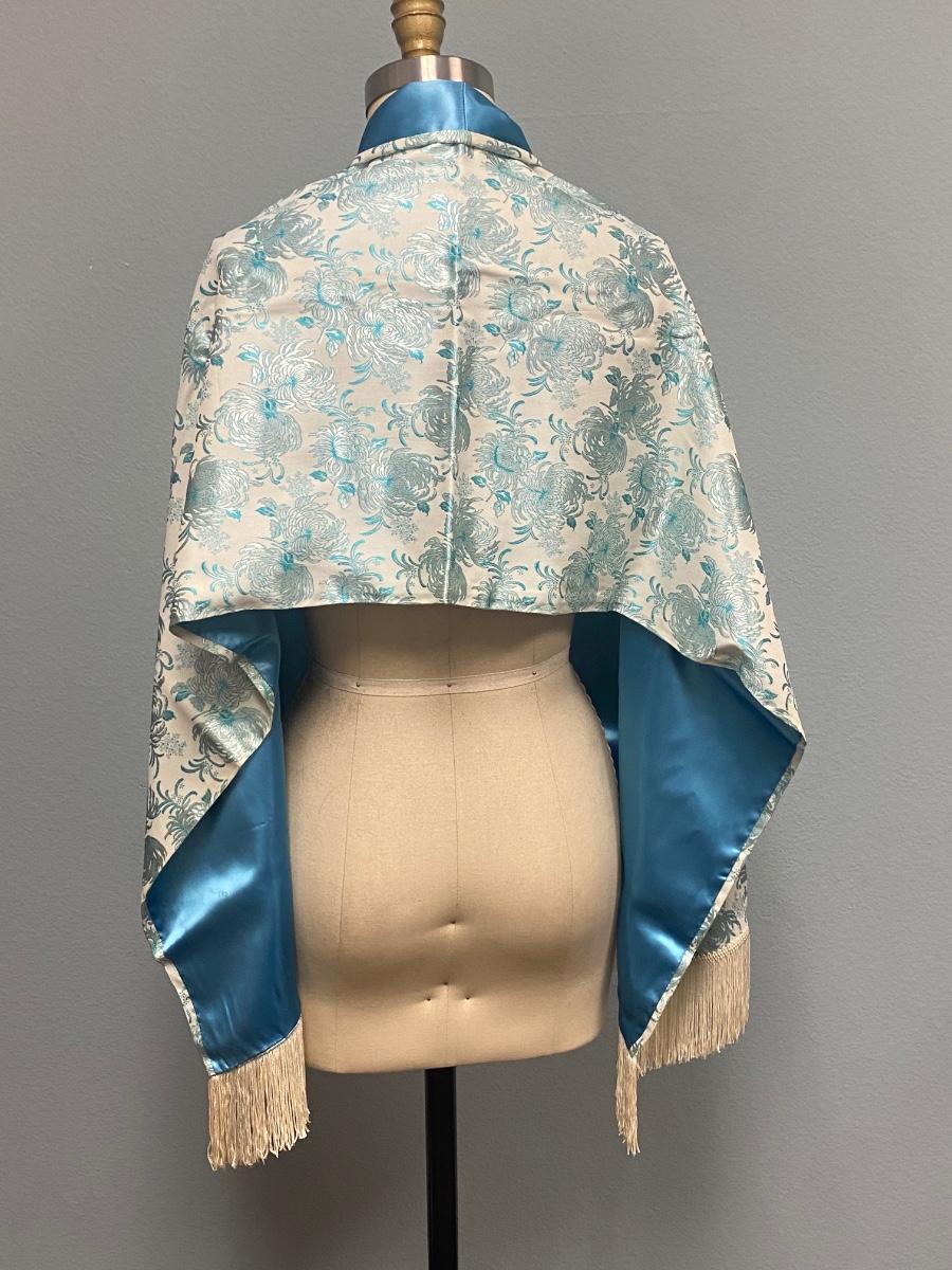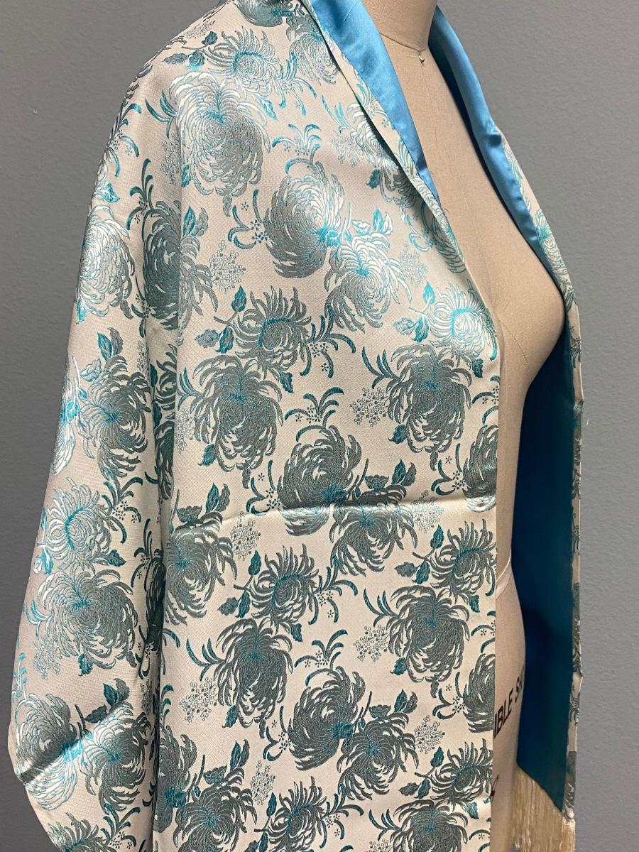 Vintage Blue Turquoise Hollywood Regency Satin Shawl Scarf