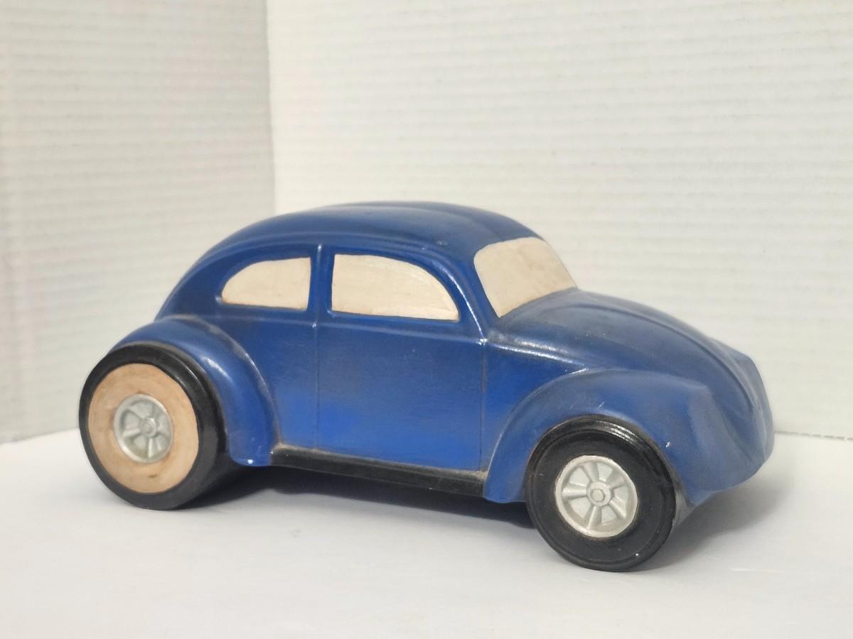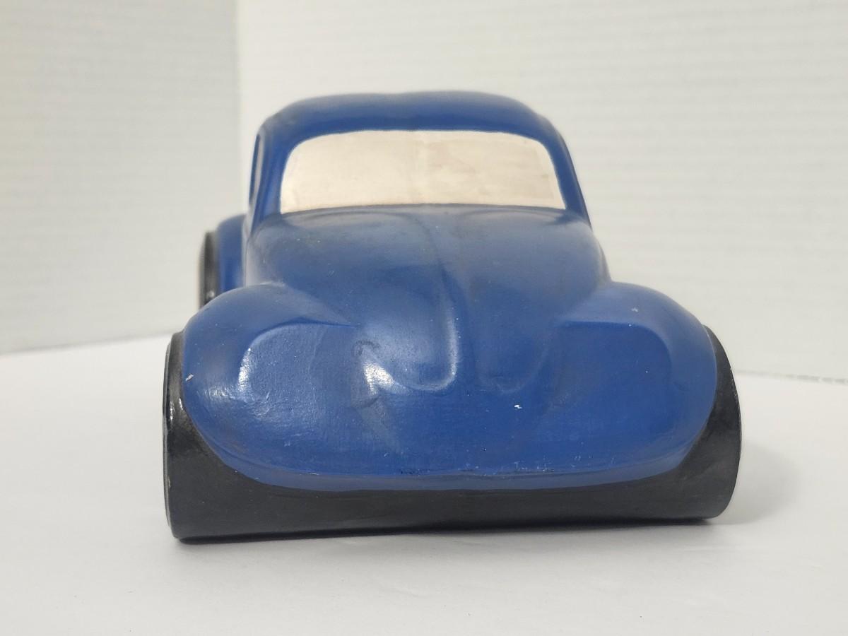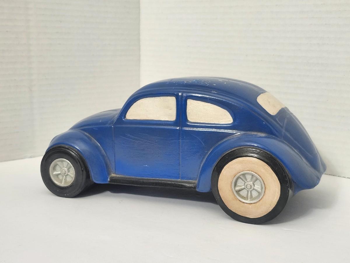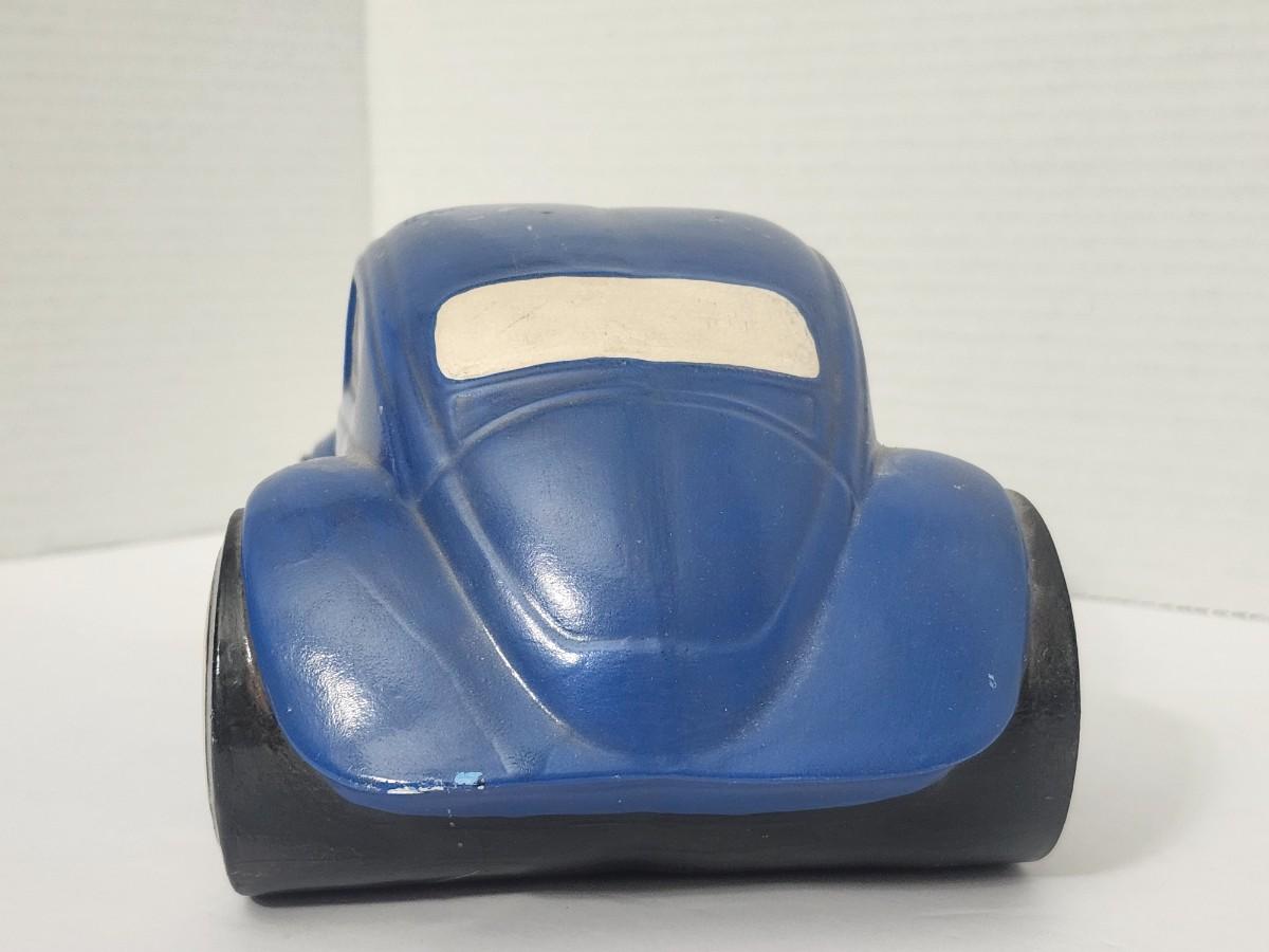 Vintage Blue Volkswagen Beetle Style Ceramic Car Figurine Mid Century Automotive Decor