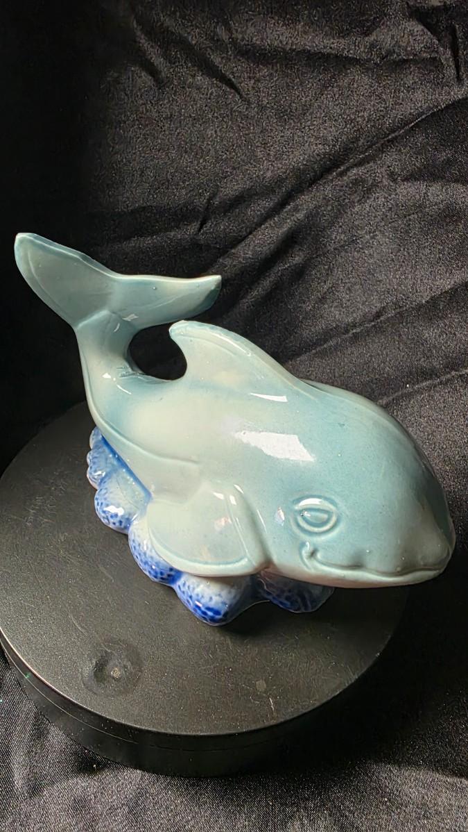 Perfect as a standalone decorative accent or layered into a larger vignette, this whale figurine offers both nostalgia and charm. It appeals to collectors of vintage ceramics, lovers of marine motifs, and anyone seeking a unique decorative piece that feels joyful, relaxed, and enduring.