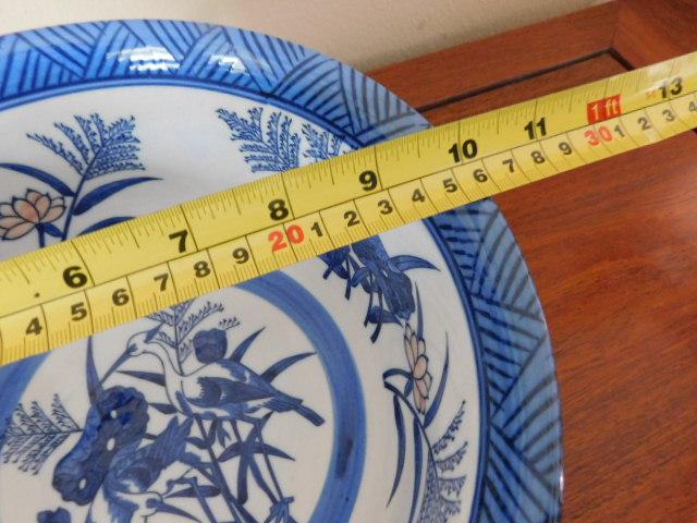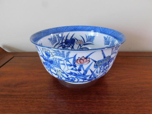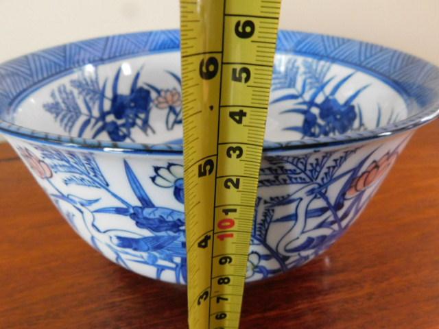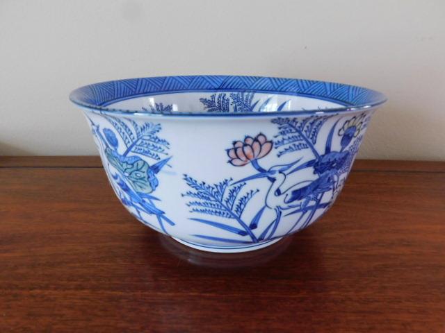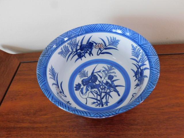 Vintage Blue & White Chinoiserie Bowl Heron and Lotus 10"x5"