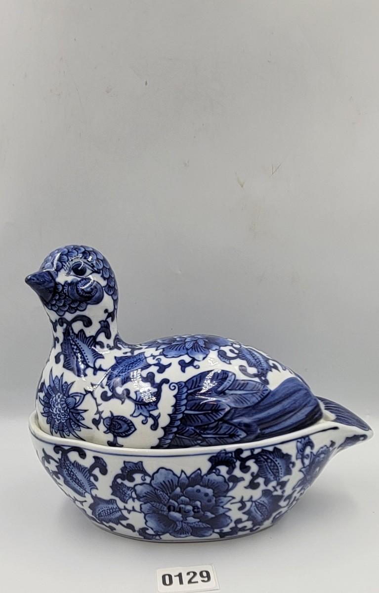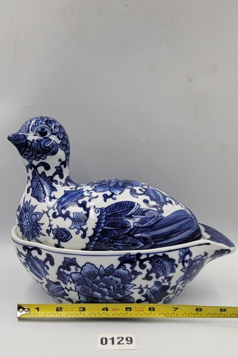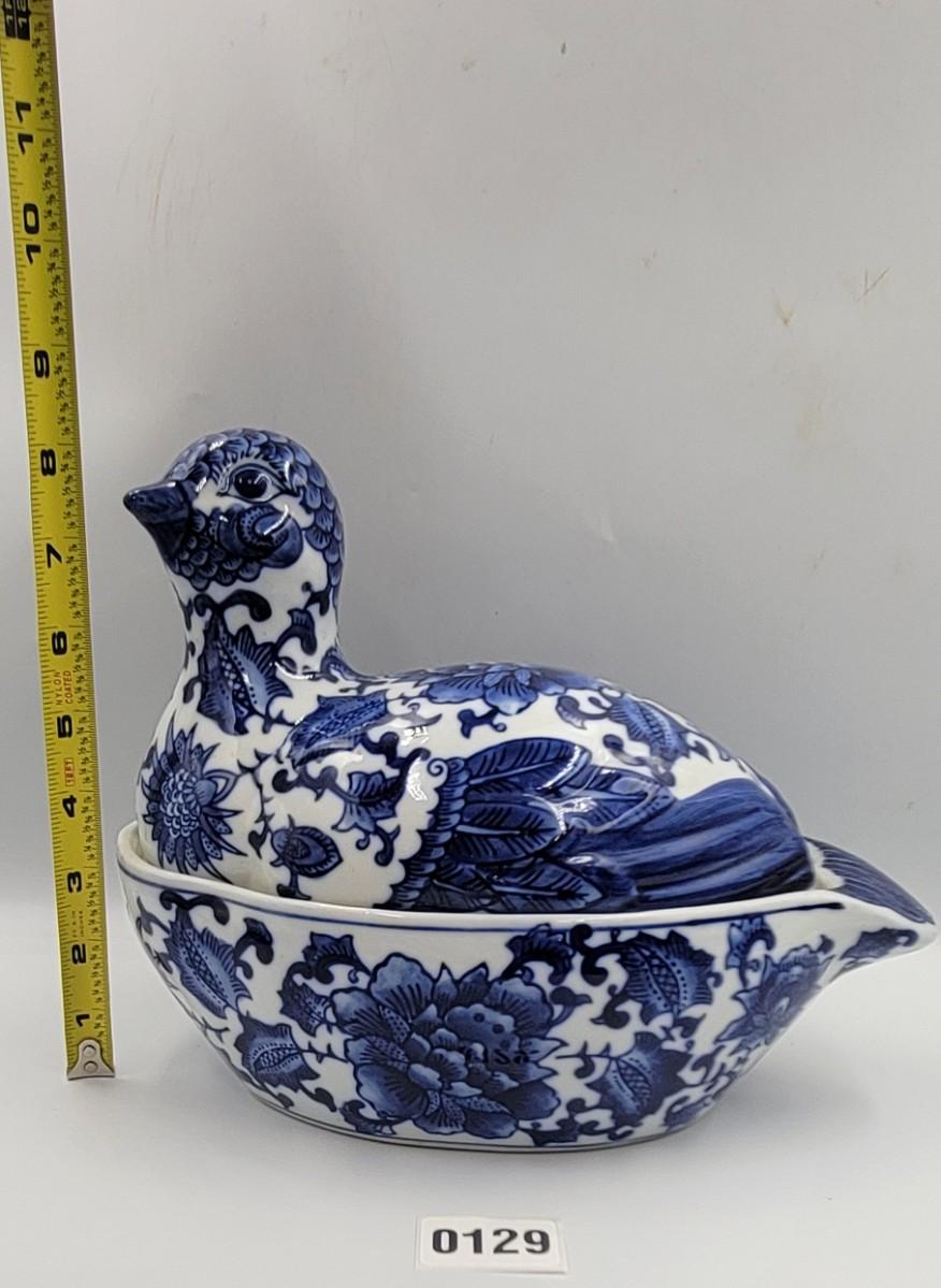 Ceramic construction. Very beautiful item that sits at approximately 8" tall and approximately 9 1/2" wide. This ol' bird does not have any of its feathers ruffled and is, further, free of any other known defects.