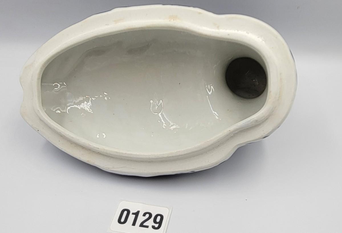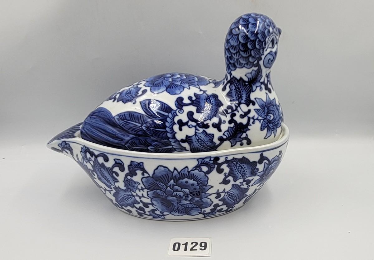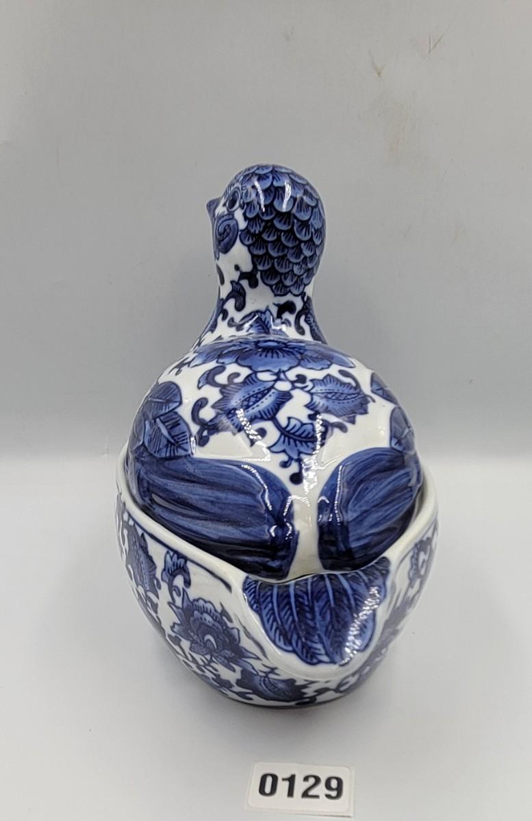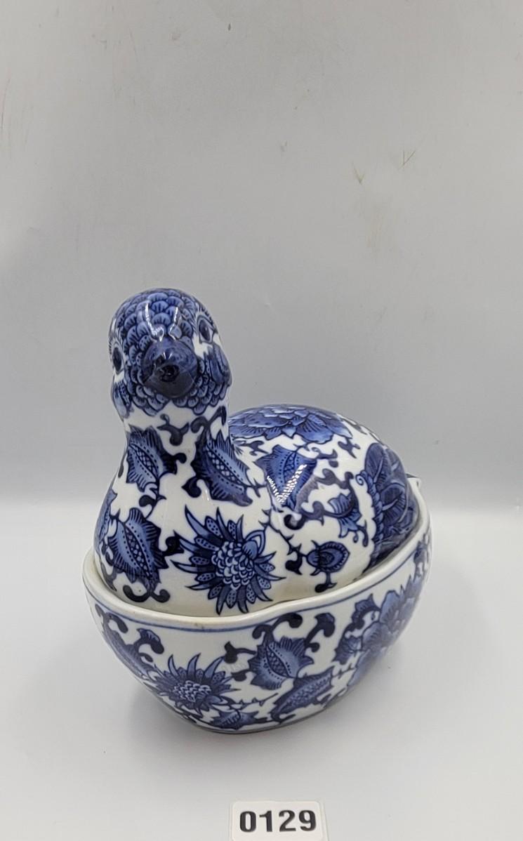 Ceramic construction. Very beautiful item that sits at approximately 8" tall and approximately 9 1/2" wide. This ol' bird does not have any of its feathers ruffled and is, further, free of any other known defects.