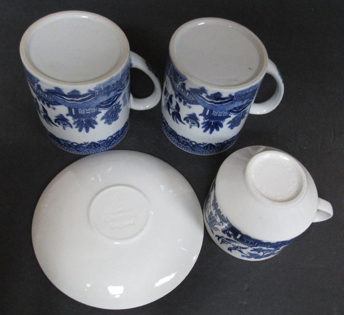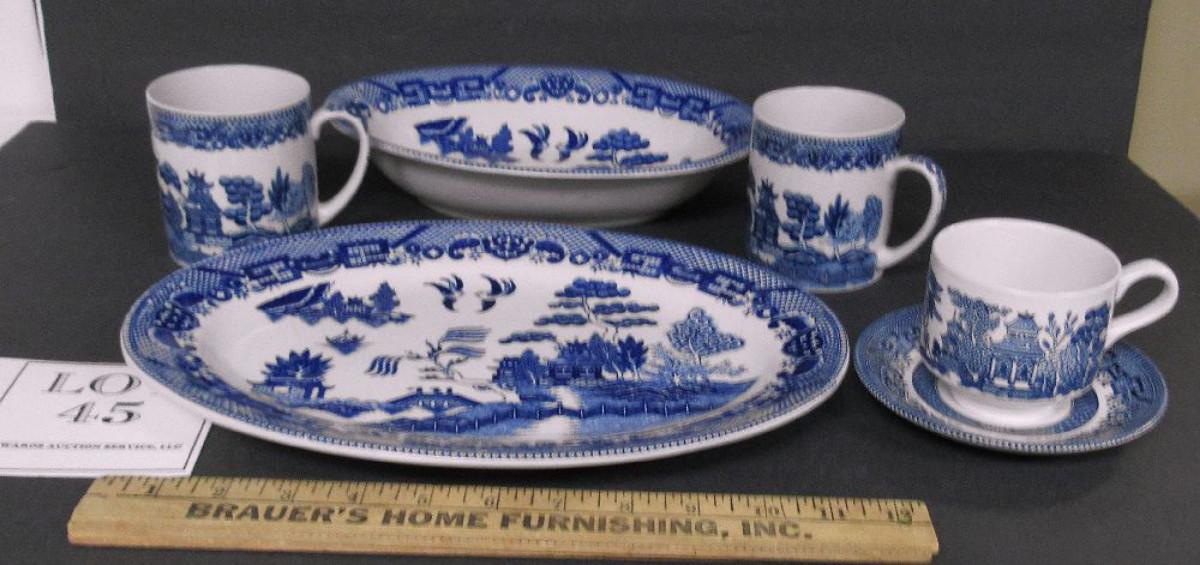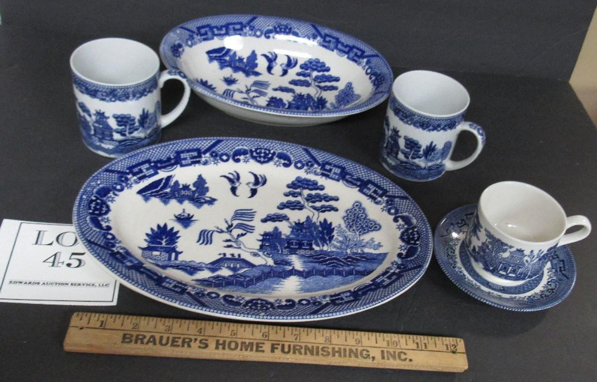 Vintage Blue Willow Lot, Platter, Veggie Bowl, Mugs, England C/S
