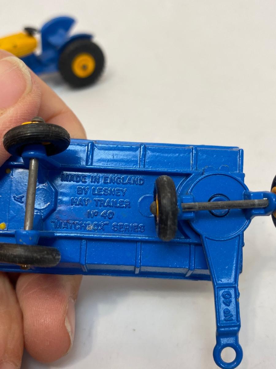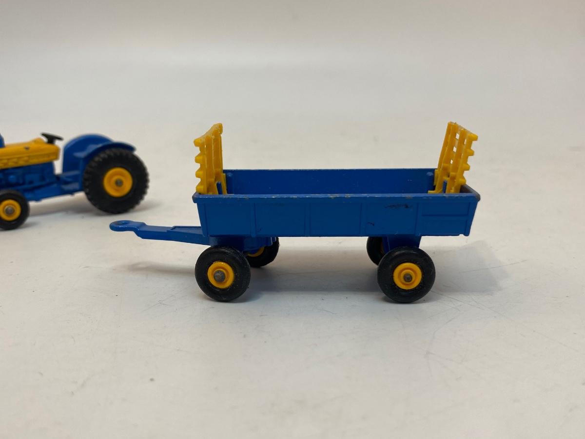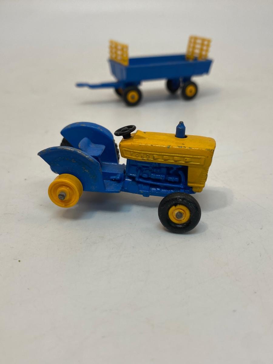 Vintage Blue & Yellow Lesney Matchbox Diecast Ford Tractor #39 w Hay Trailer #40