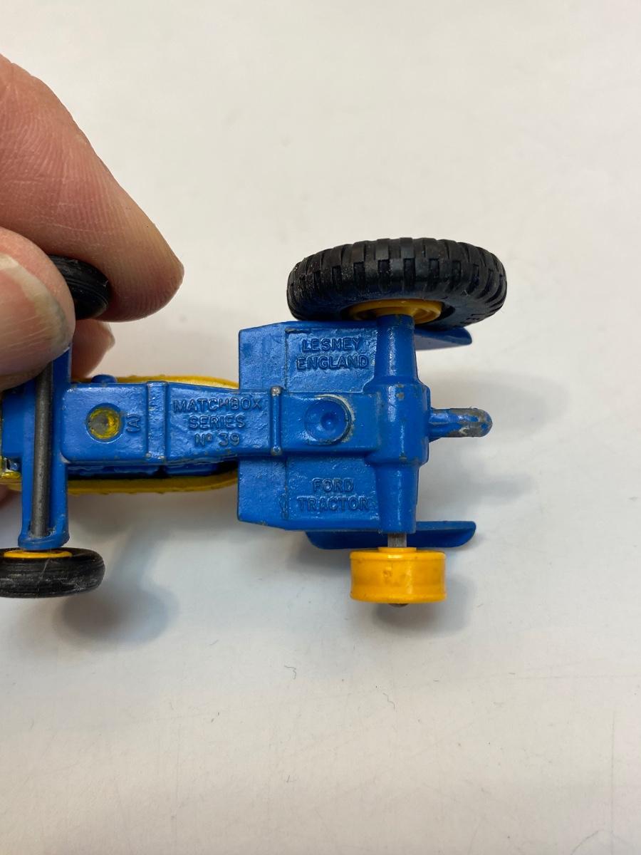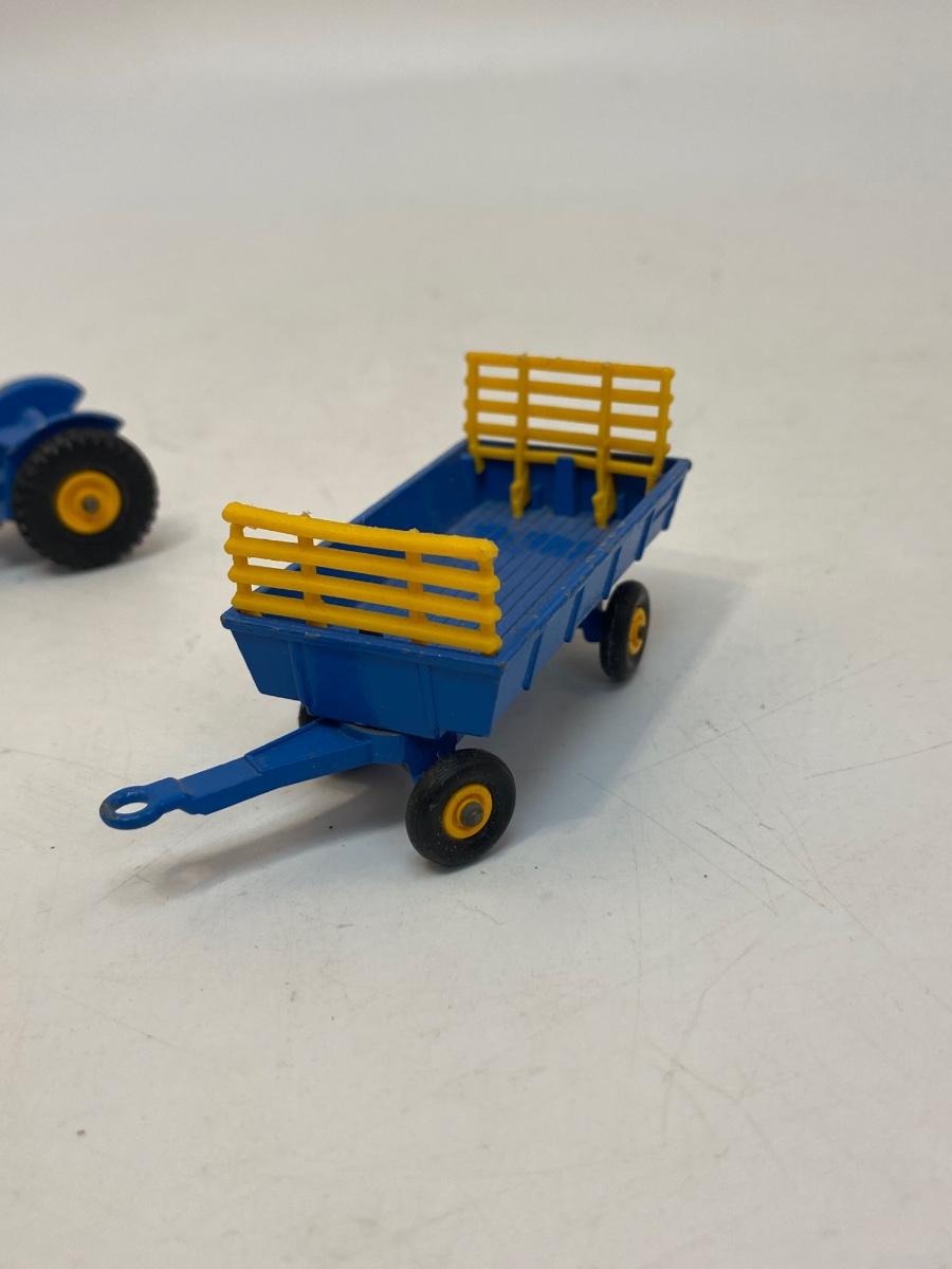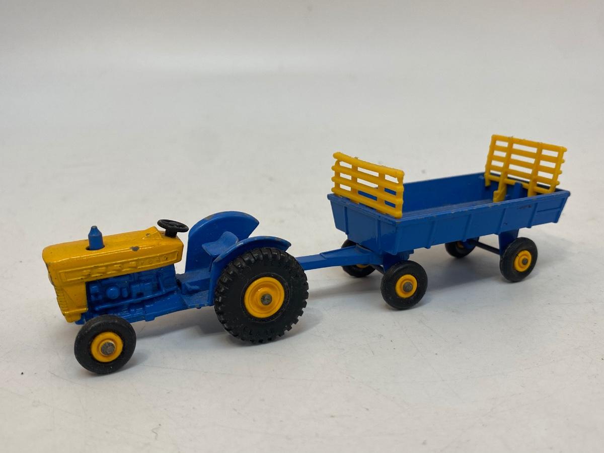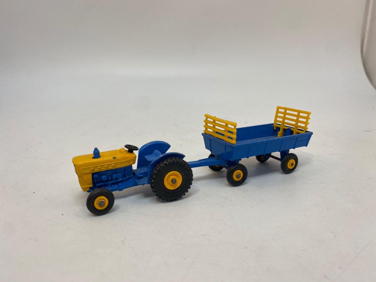 Vintage Blue & Yellow Lesney Matchbox Diecast Ford Tractor #39 w Hay Trailer #40