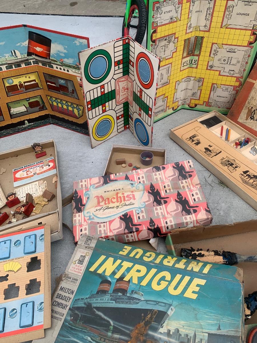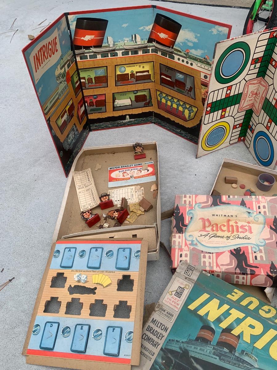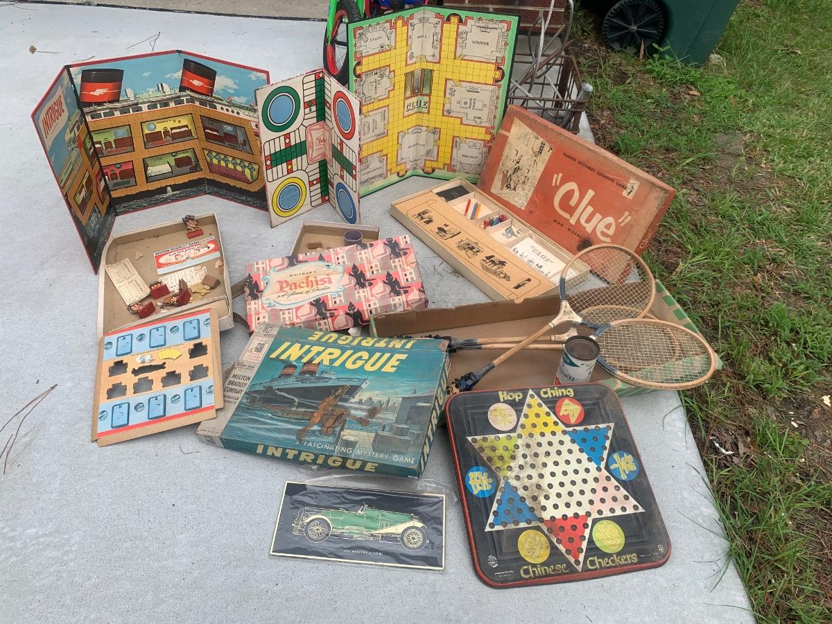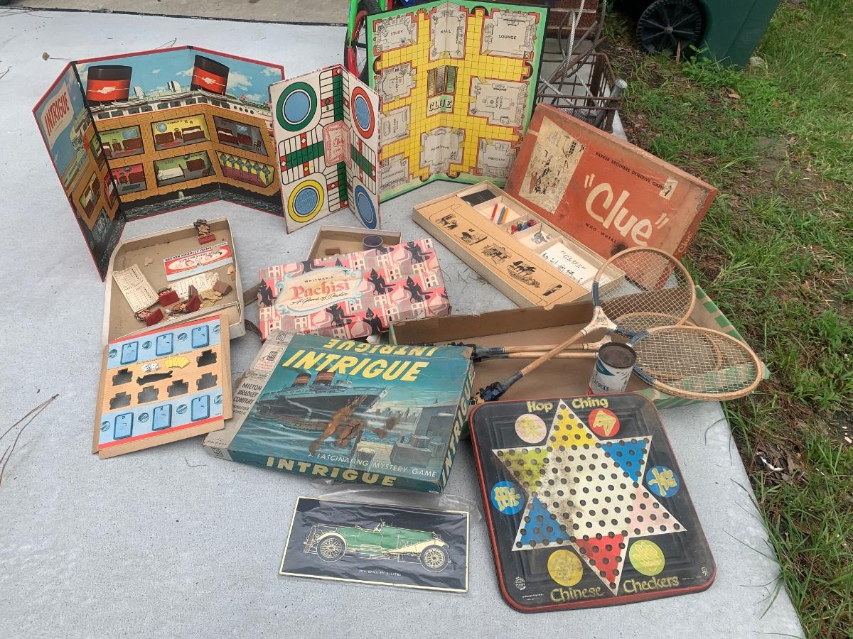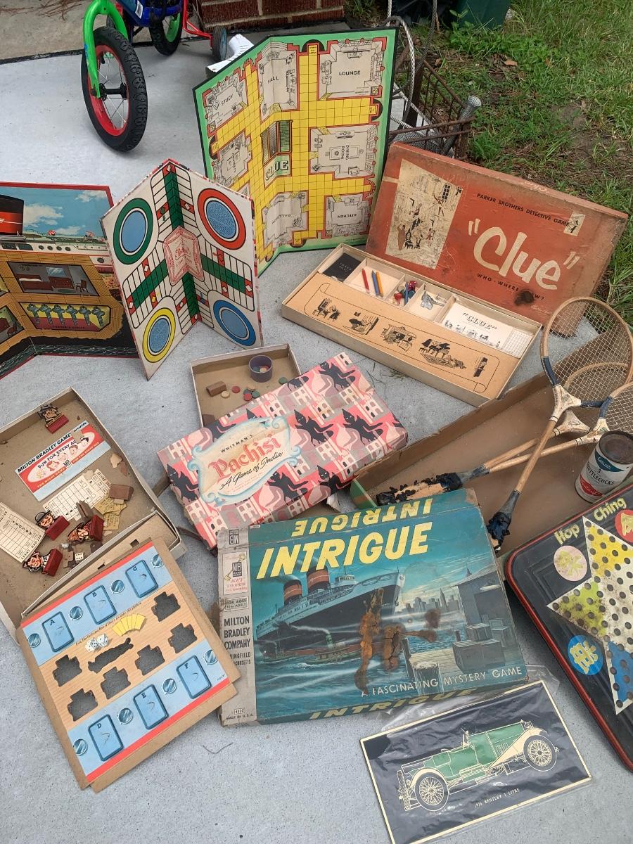 Vintage board games- Clue, Intrigue, Pachisi & Badminton