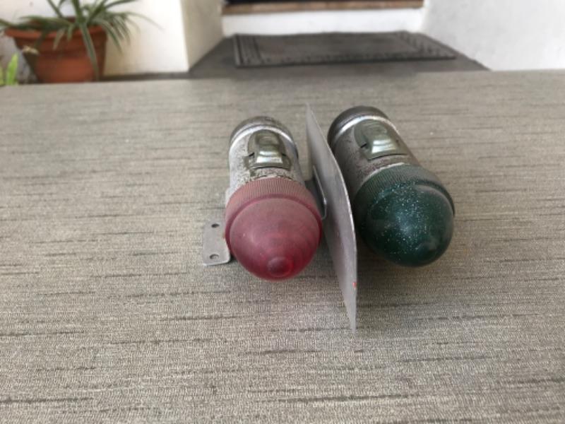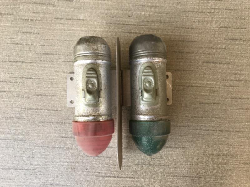 Aluminum boat directional lamp. Fair condition. Red and green plastic covers are in good condition, no cracks.