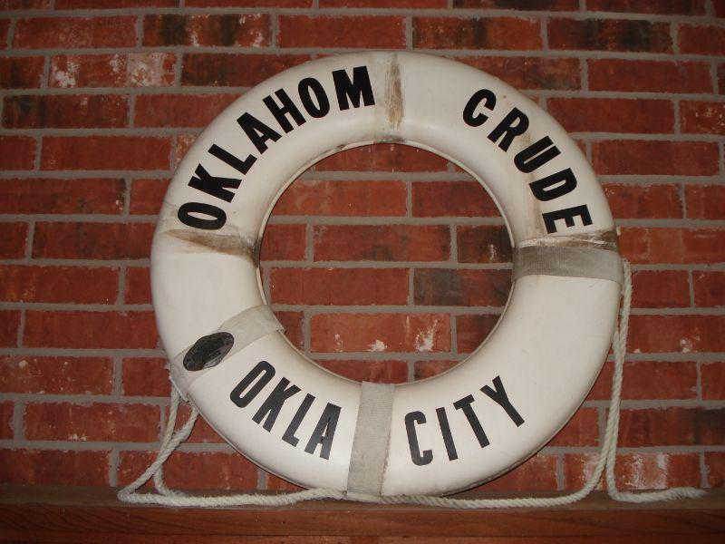 OKLAHOM CRUDE OKLA CITY Life Preservor, needs cleaning, has metal tag on it. Great decoration for office , restaurant or man cave.