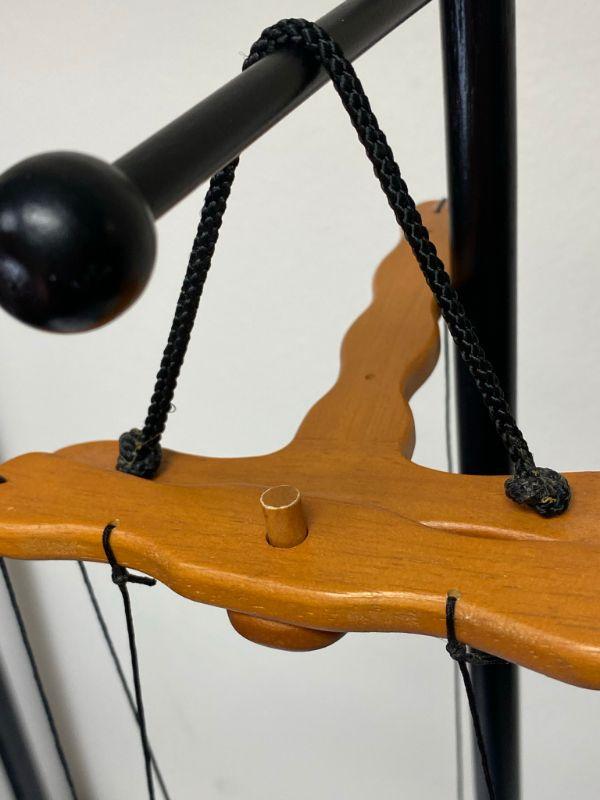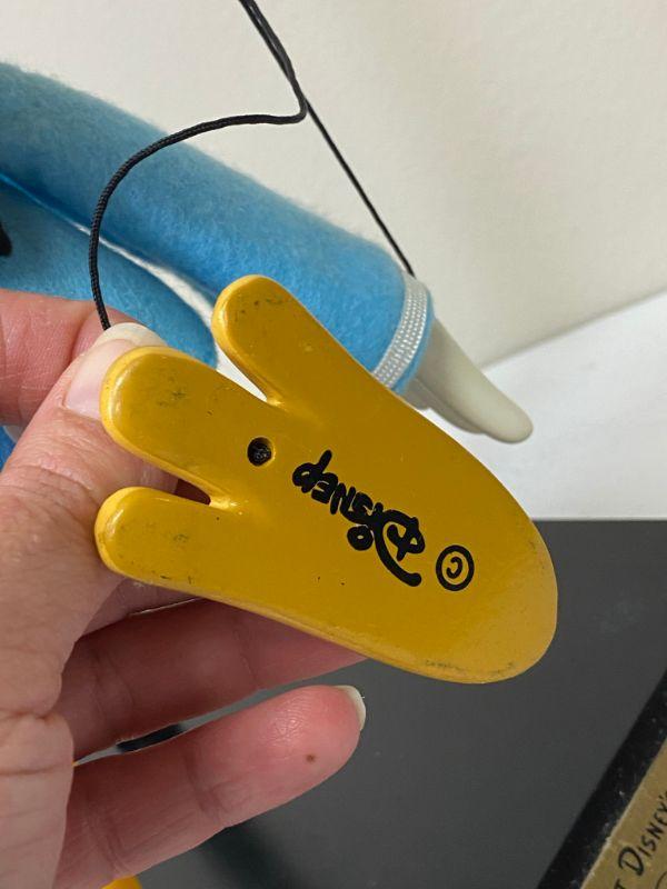 Vintage Bob Baker Marionettes & Disney string puppet DONALD DUCK from Wise Little Hen 1934. 12" marionette in good displayed condition. Comes with display stand. Marked on the bottom of his feet. No number marking. Rubber tubing holding hands and feet is intact. Paint and clothes are in good condition. A little dusty from previous display. No COA.