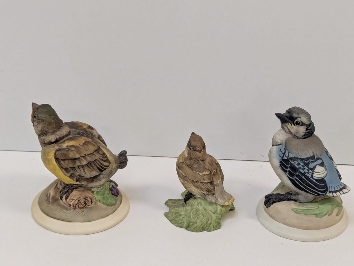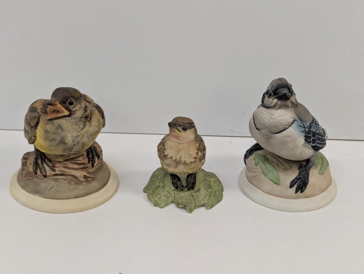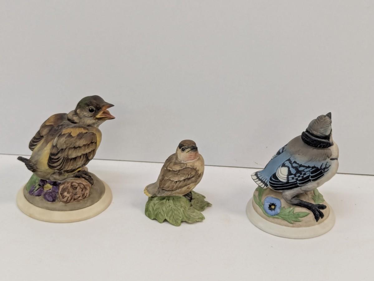 Vintage Boehm Baby Blue Jay Baby Goldfinch & Baby Cedar Waxing Porcelain Figurines #432 & 448 & 436