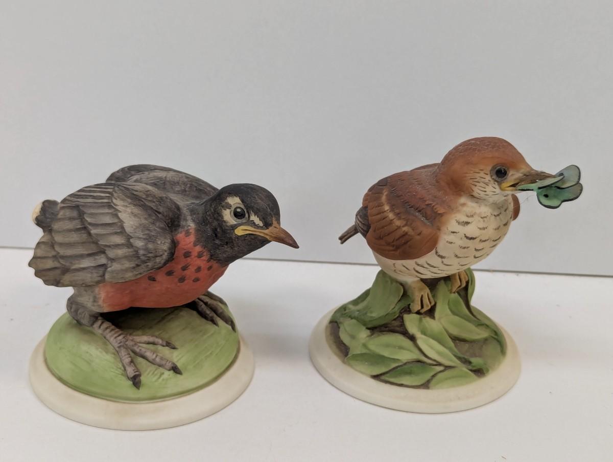 Vintage Boehm Baby Robin & Baby Wood Thrush Porcelain Figurines #437 & #444