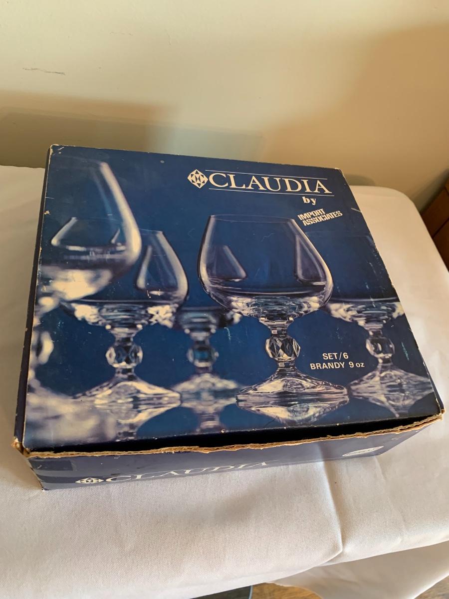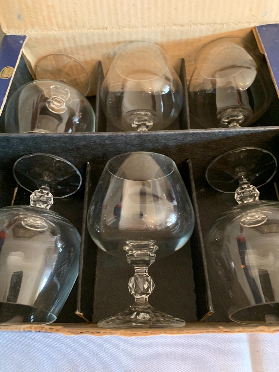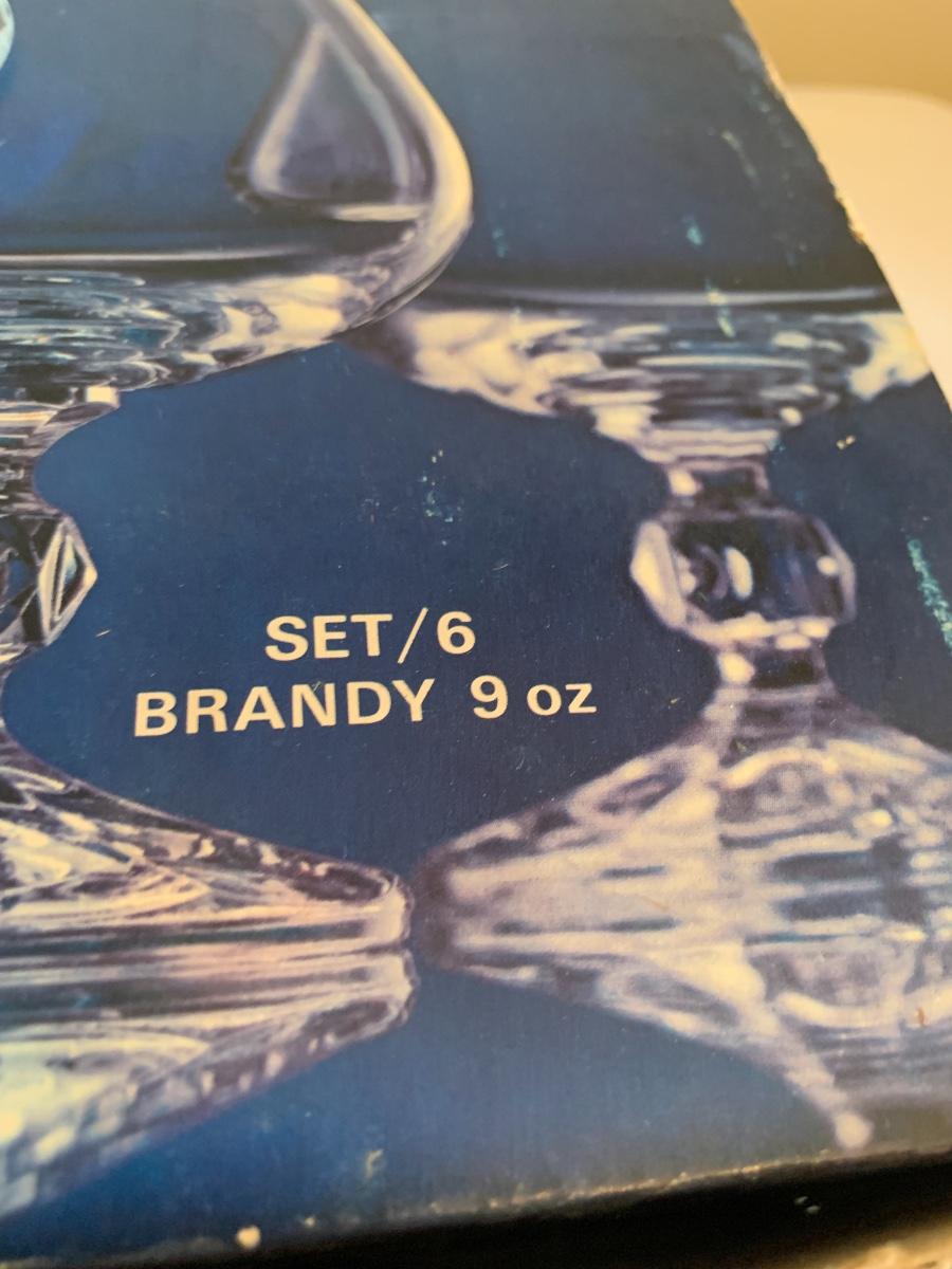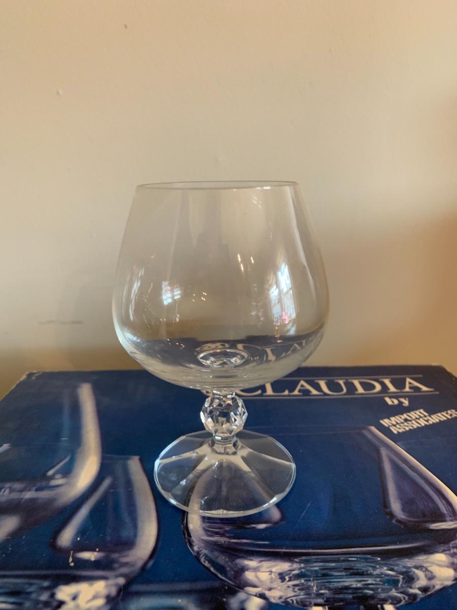 VINTAGE Bohemia Crystal Brandy Glasses 9 oz. CLAUDIA Prism Ball Stem 6-Piece Set in orginal box. In like new condition. 1987