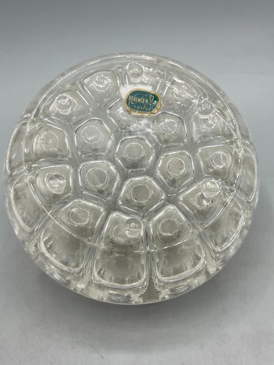 Vintage Bohemia Crystal Clear Glass Flower Frog