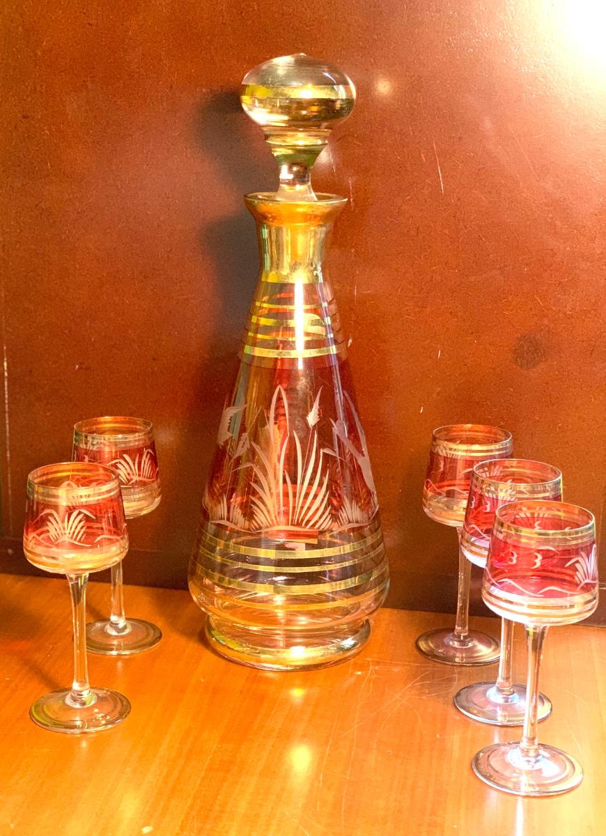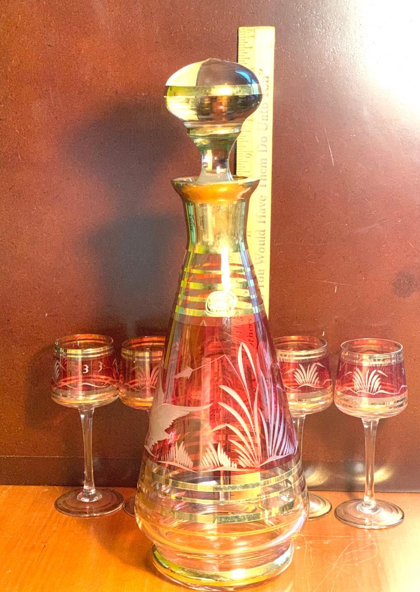 Beautiful Vintage Bohemian Czech Crystal Glass Carafe/Decanter Set
