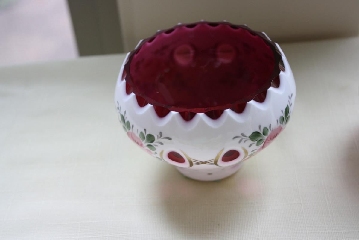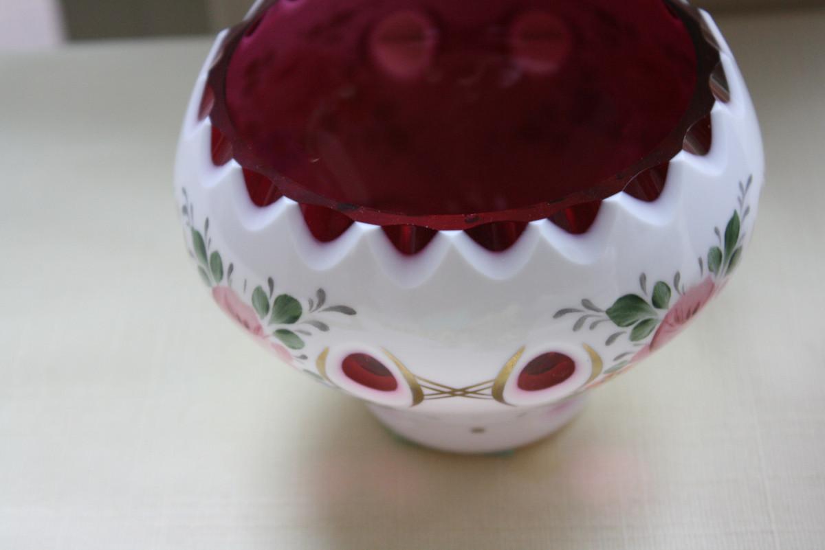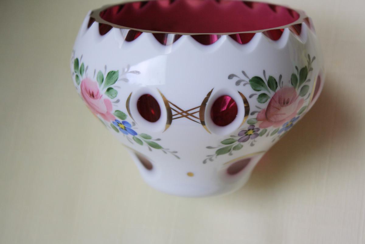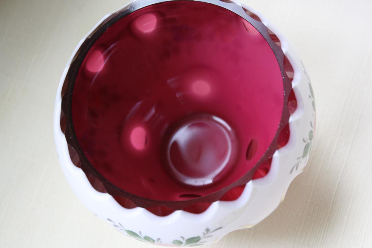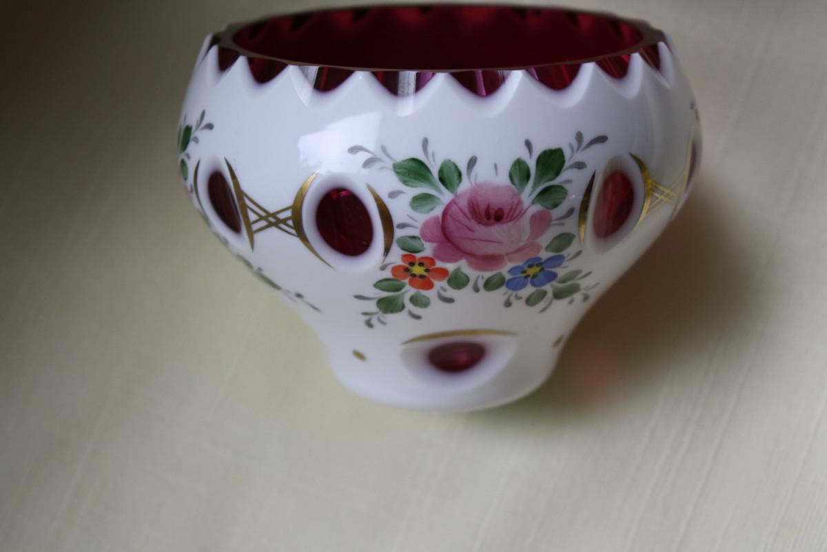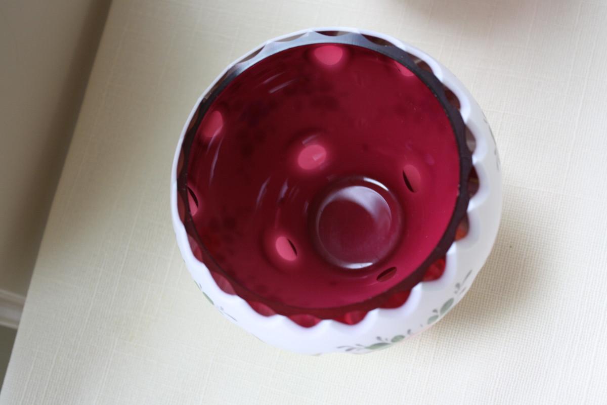 VINTAGE BOHEMIAN CZECH OVERLAY CUT TO CRANBERRY BOWL VASE 3.75" (KP/CN)