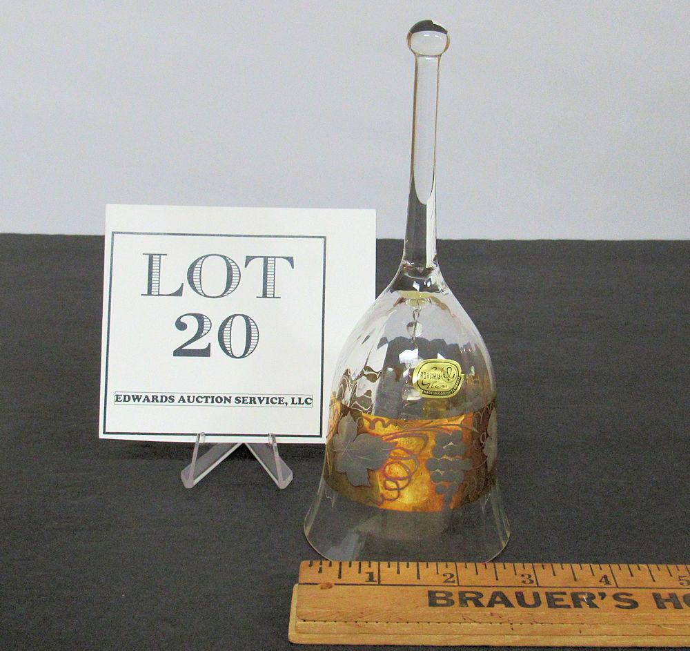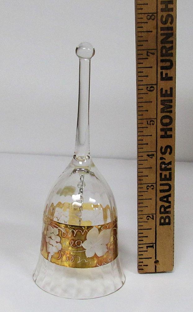Vintage Bohemian Fancy Crystal With Gold Trim Glass Bell, Grapes Pattern