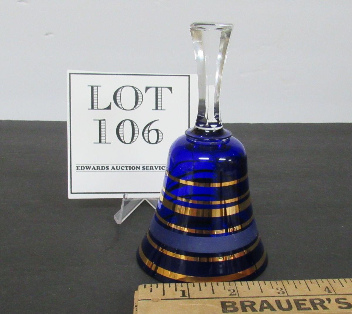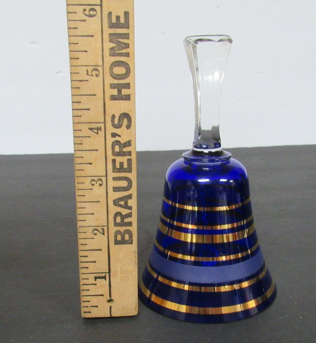 Vintage Bohemian Glass Bell Cobalt Blue With Gold Trim, No Label