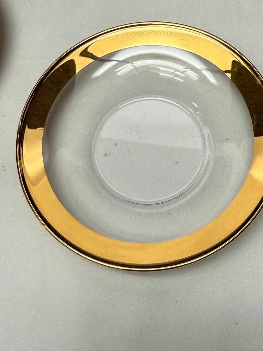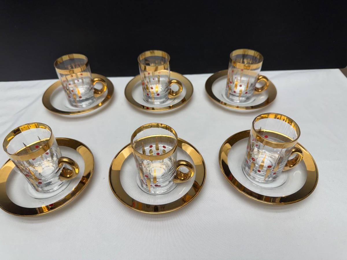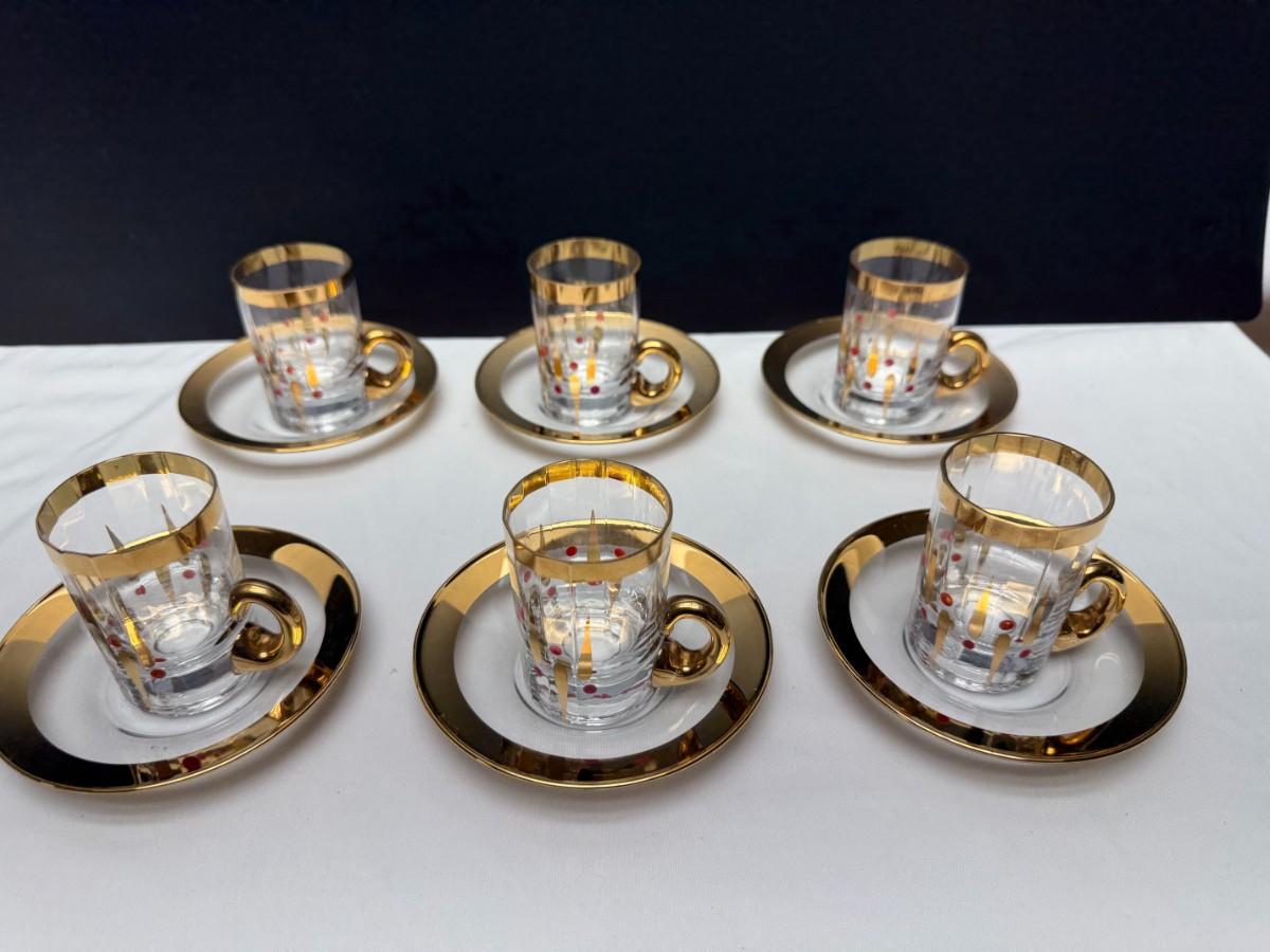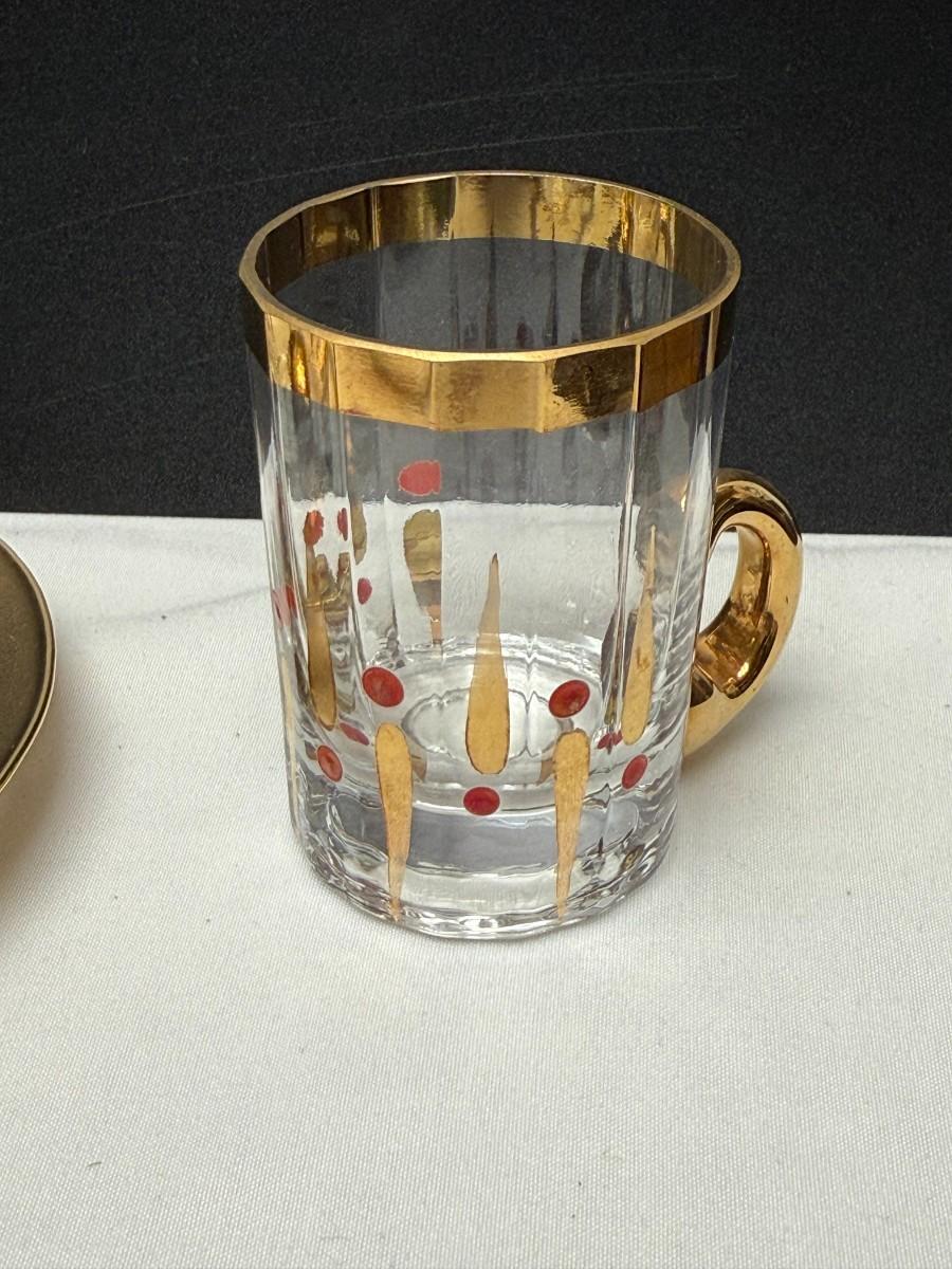 Vintage Bohemian glass Turkish tea set w/gold rim/red accents.