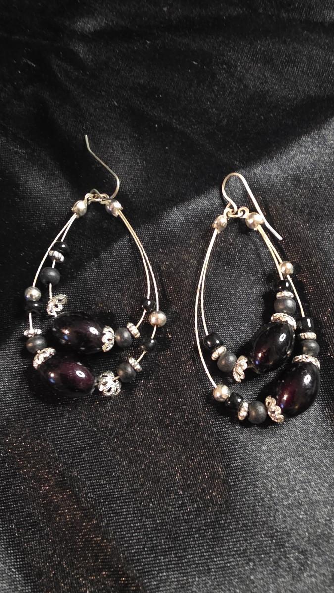 Vintage Bohemian Teardrop Beaded Earrings in Deep Plum & Silver Accents