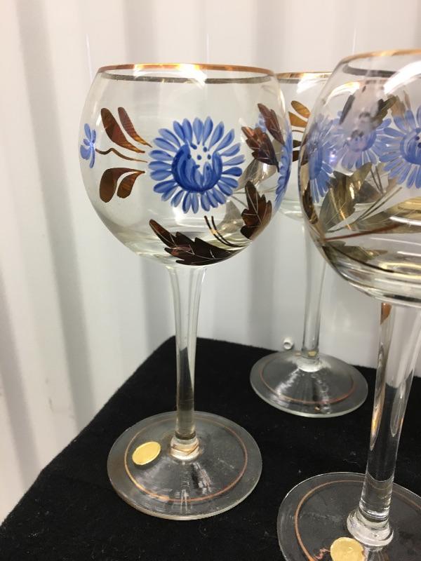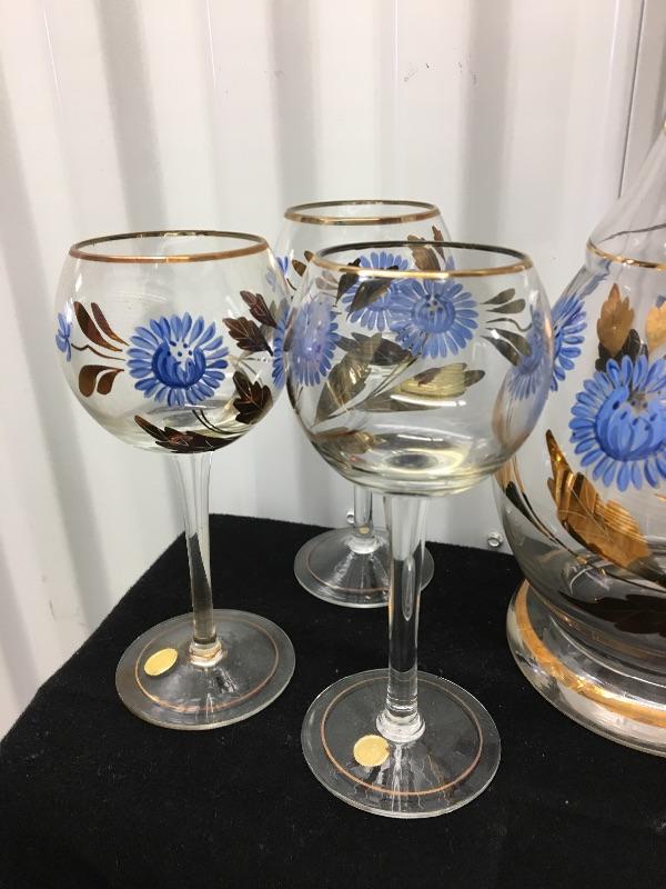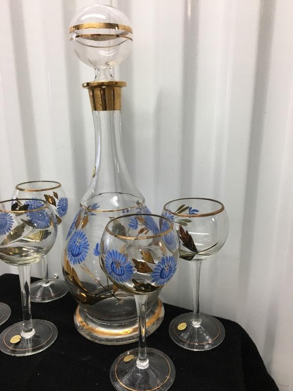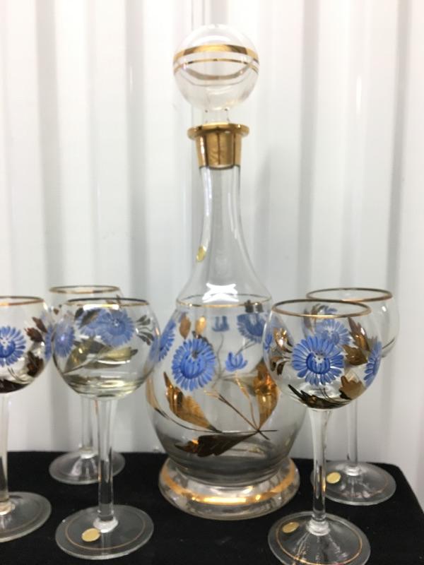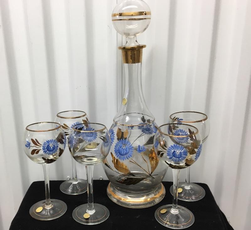 Bohemian Wine Decanter ~ 6 piece set, with Floral Design. All in excellent condition, with no chips or repairs.