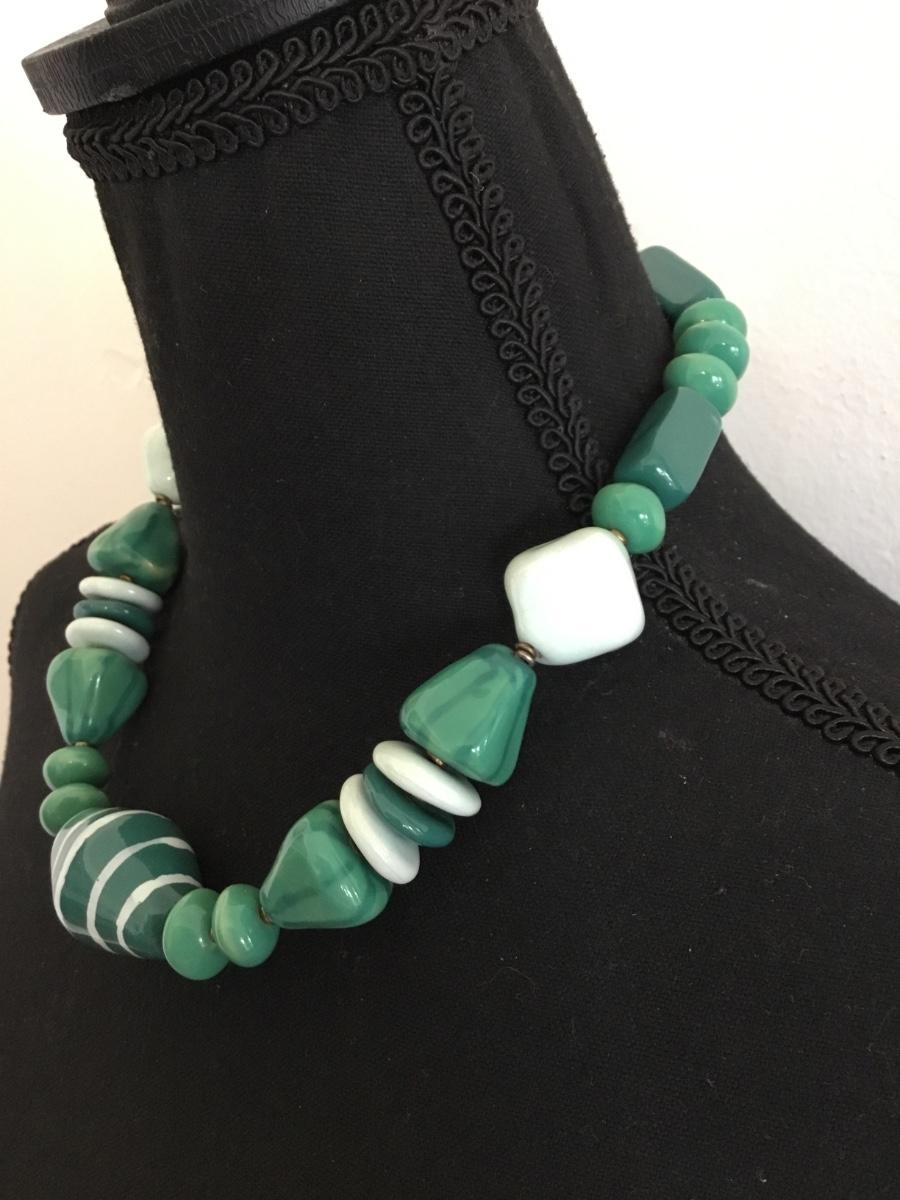Vintage BoHo, bohemian green ceramic beaded statement, necklace