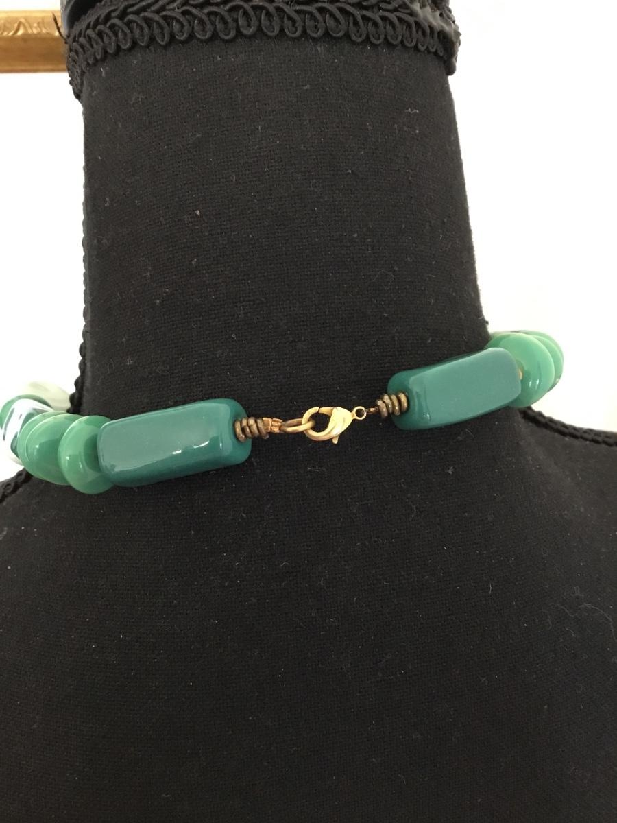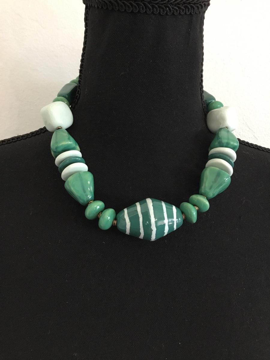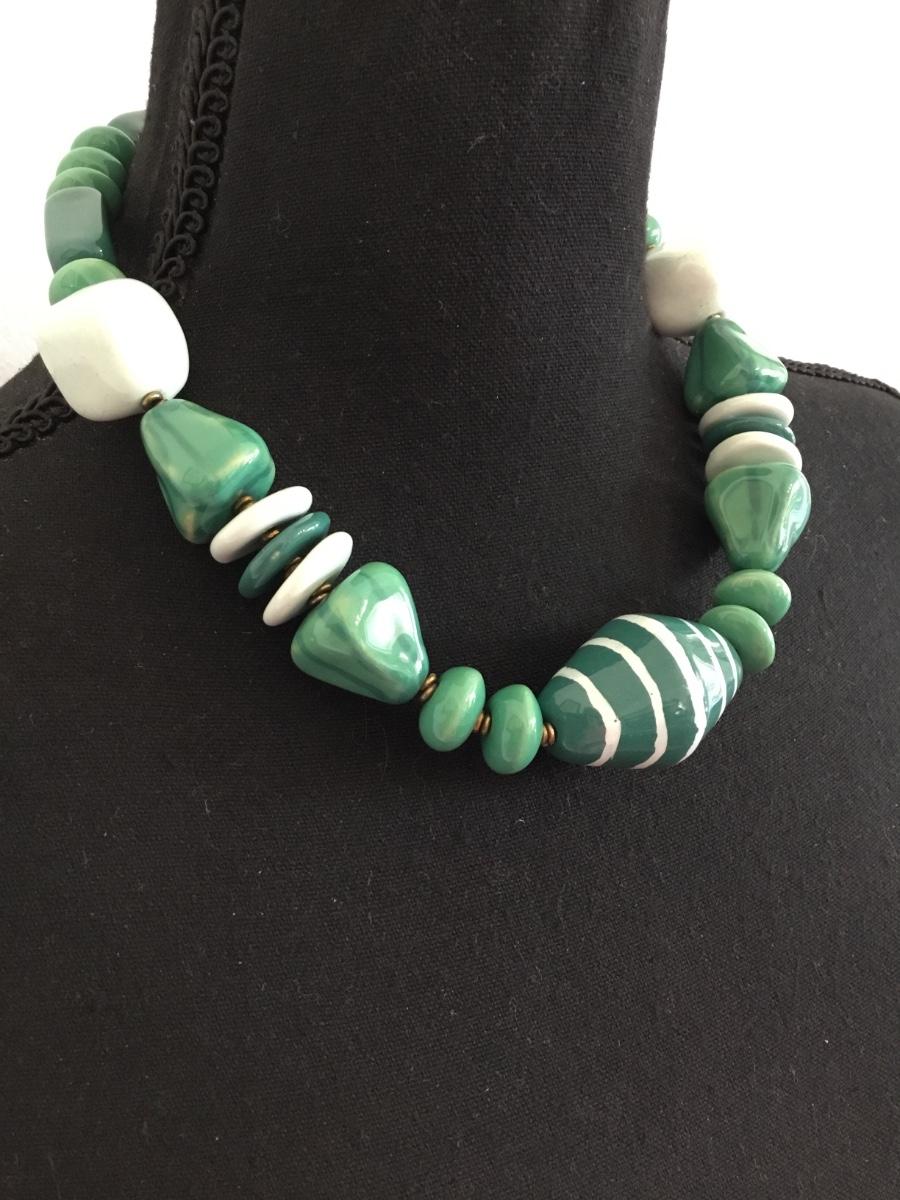 Vintage BoHo, bohemian green ceramic beaded statement, necklace