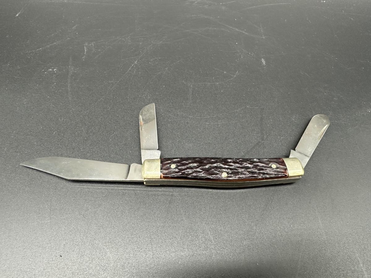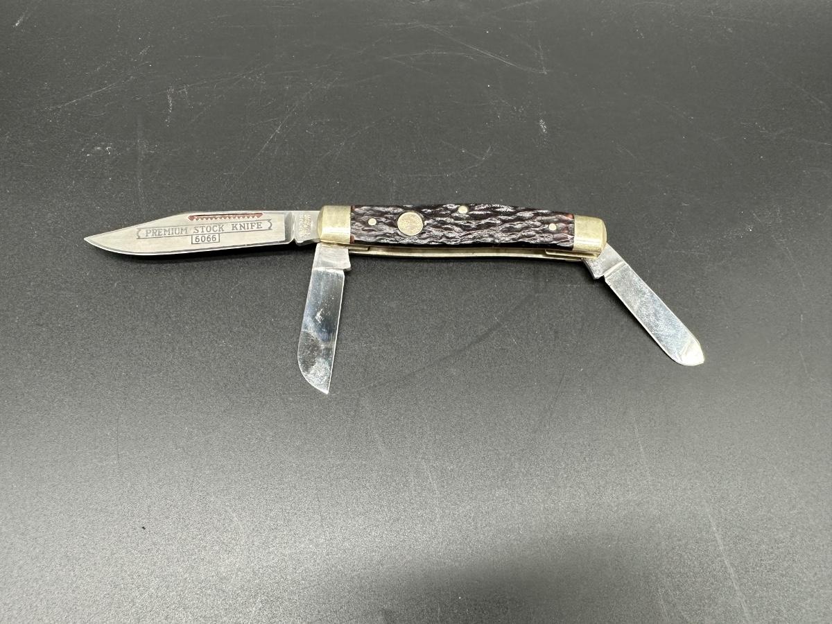 Vintage Boker Solingen Germany “Premium Stock Knife” 6066 – 3 Blade Folding Pocket Knife w/ Jigged Handle
