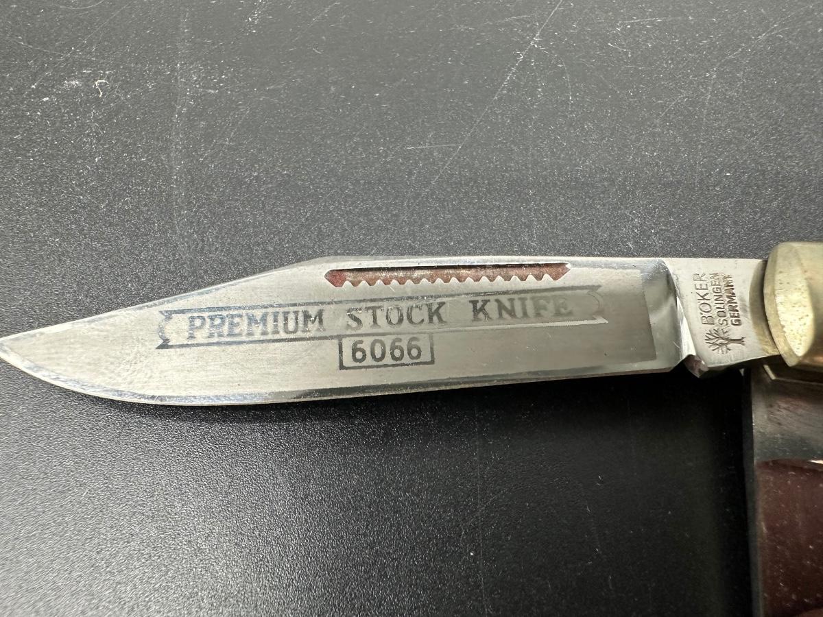 Boker Solingen Germany Premium Stock Knife model 6066, a classic 3-blade folding pocket knife with traditional styling and quality German craftsmanship.