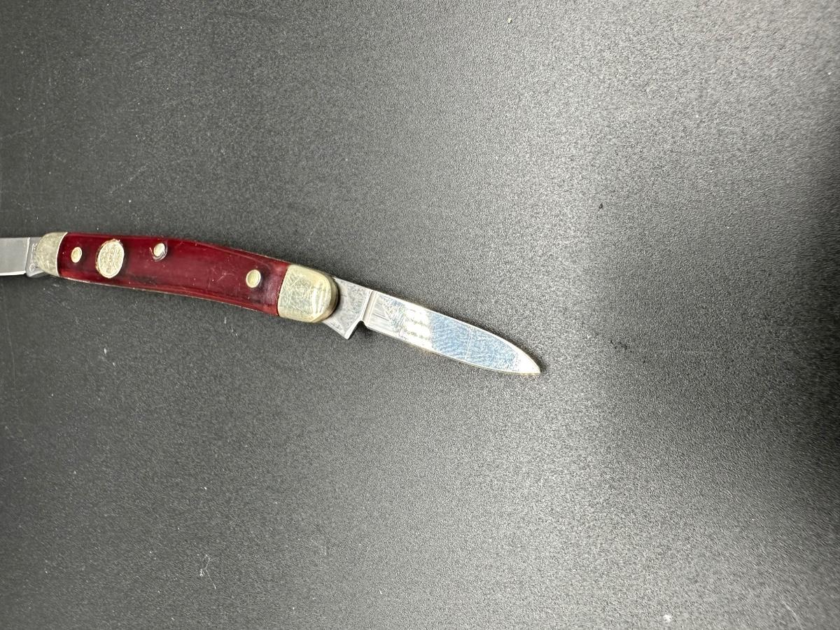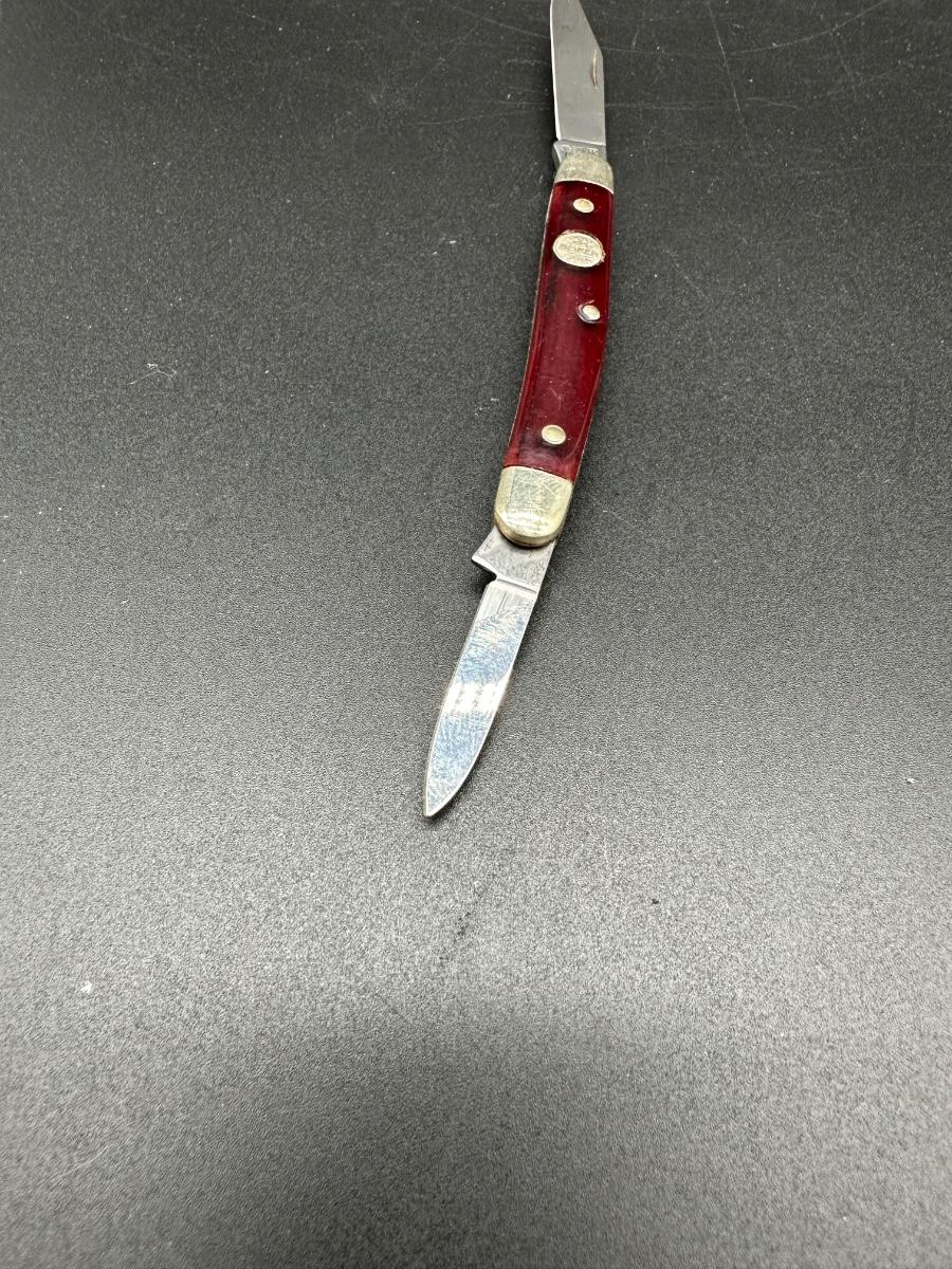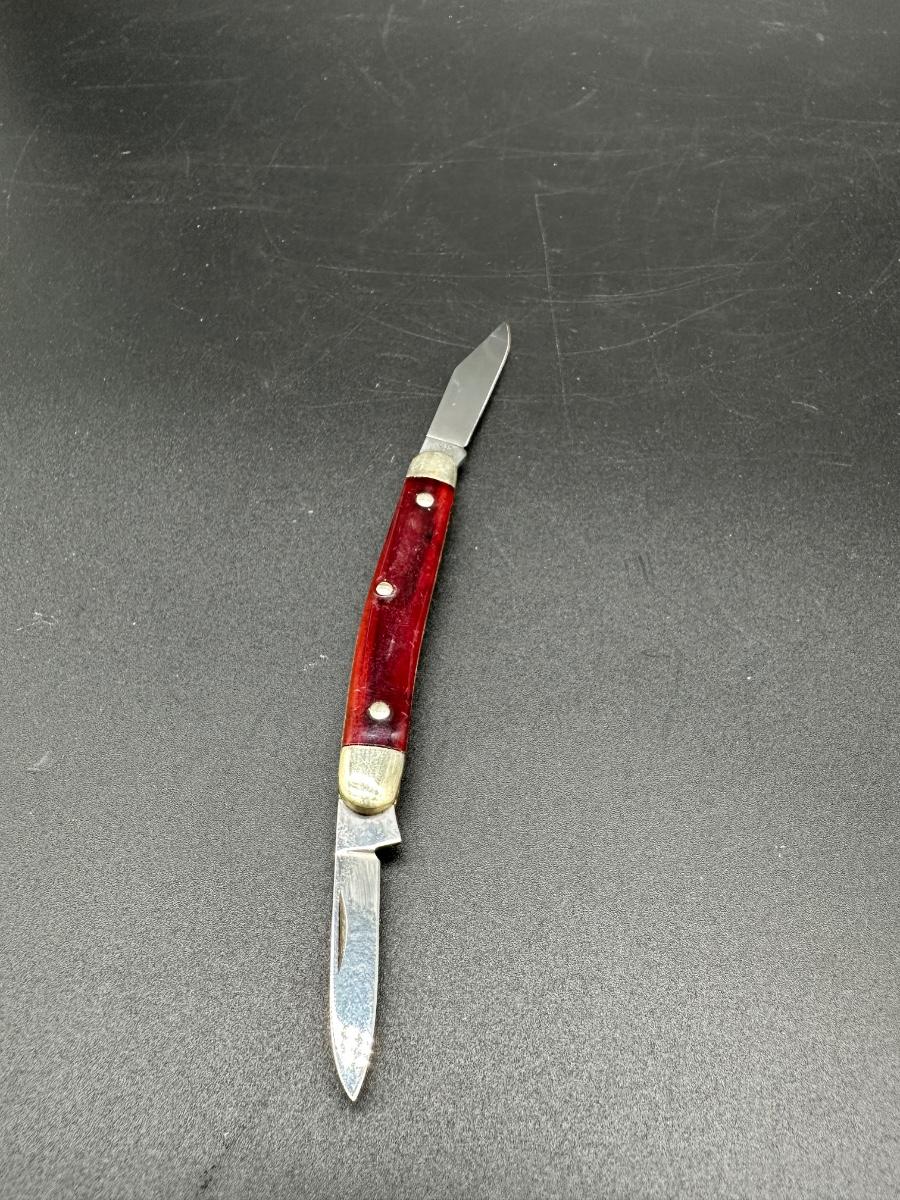 Estate find. Blades show light wear and minor spotting (see photos). Both blades open and close properly. Handle scales are solid with no visible cracks. Normal bolster wear from age and handling.