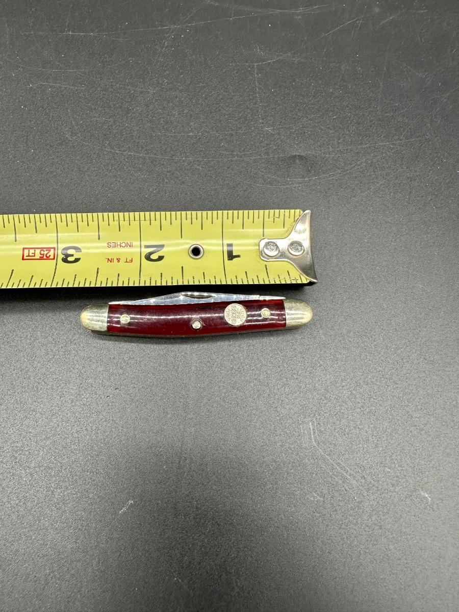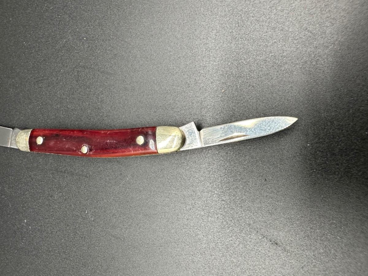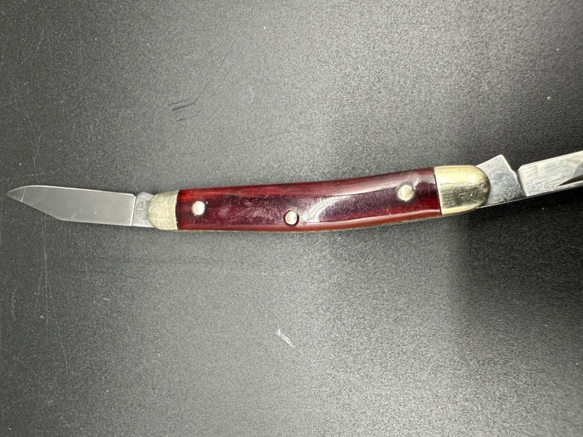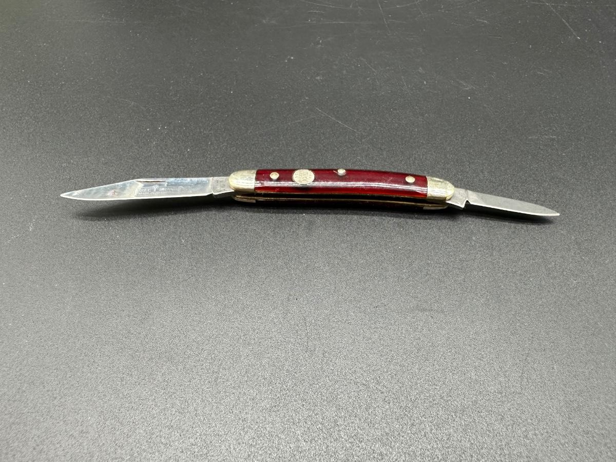 Estate find. Blades show light wear and minor spotting (see photos). Both blades open and close properly. Handle scales are solid with no visible cracks. Normal bolster wear from age and handling.
