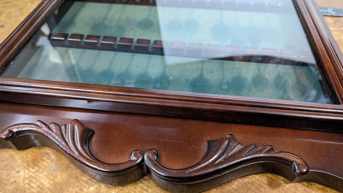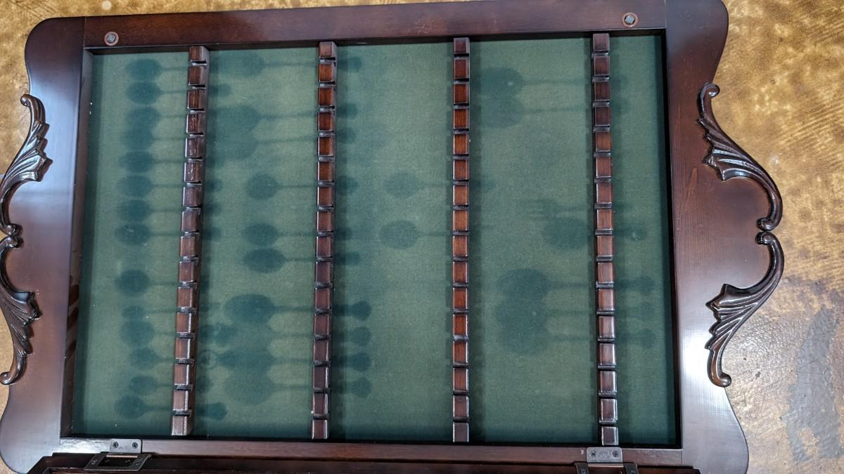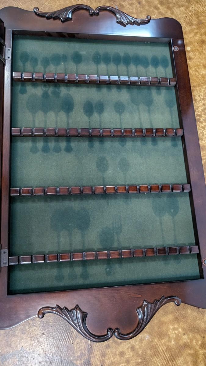 Vintage Bombay Spoon Collection Display Cabinet Discolored