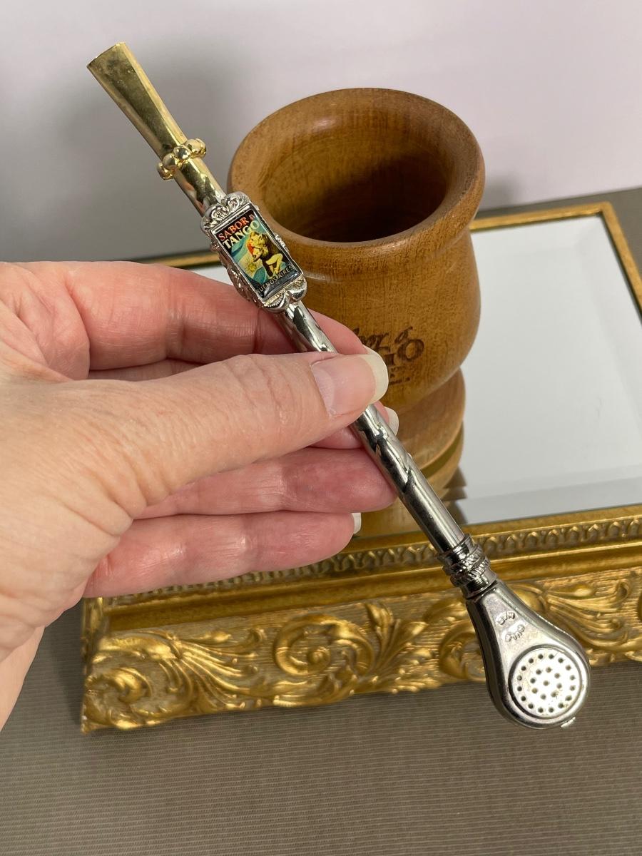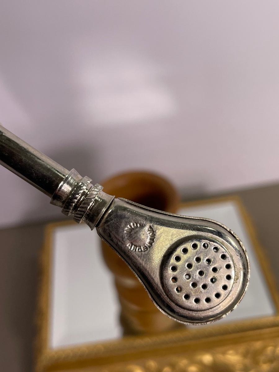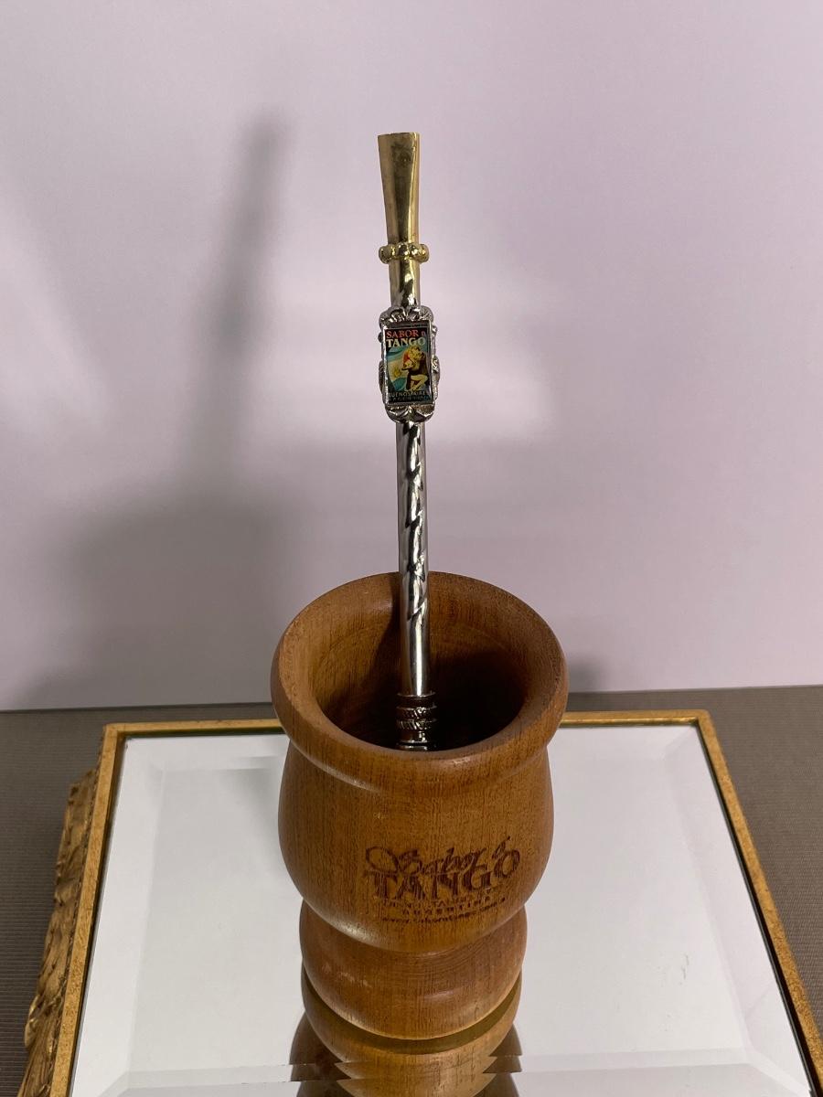 Vintage Bombilla Straw and Wooden Mate gourde