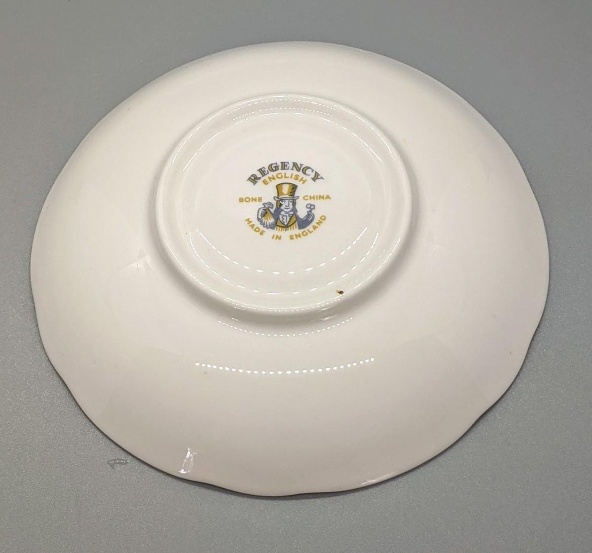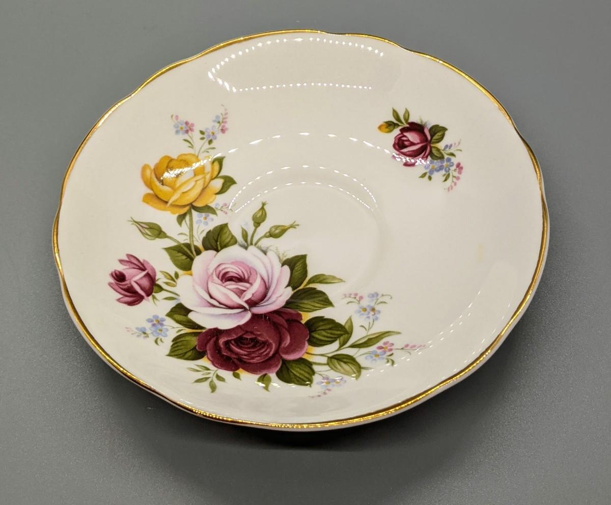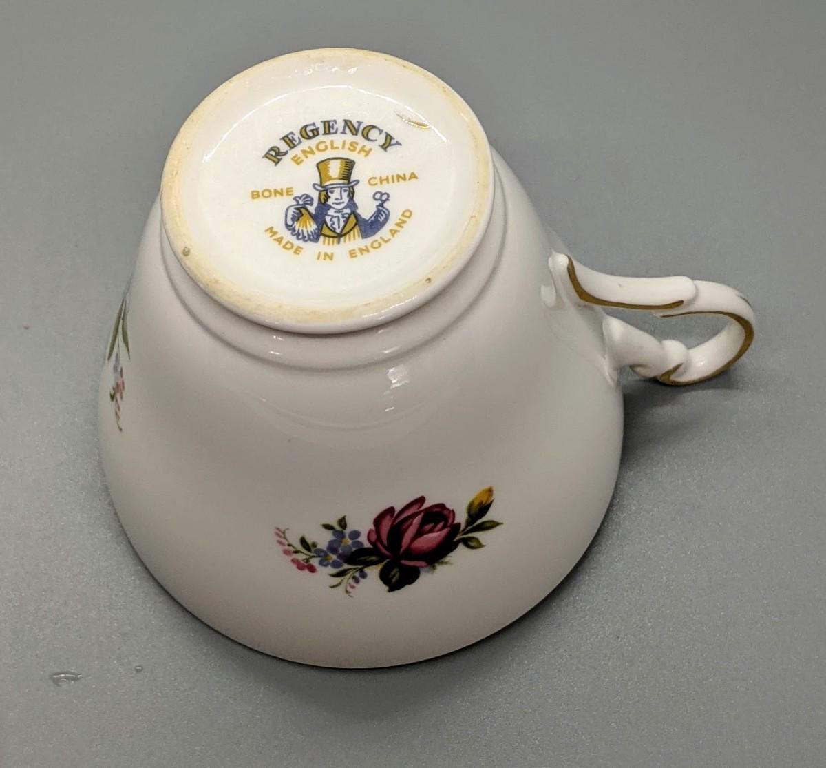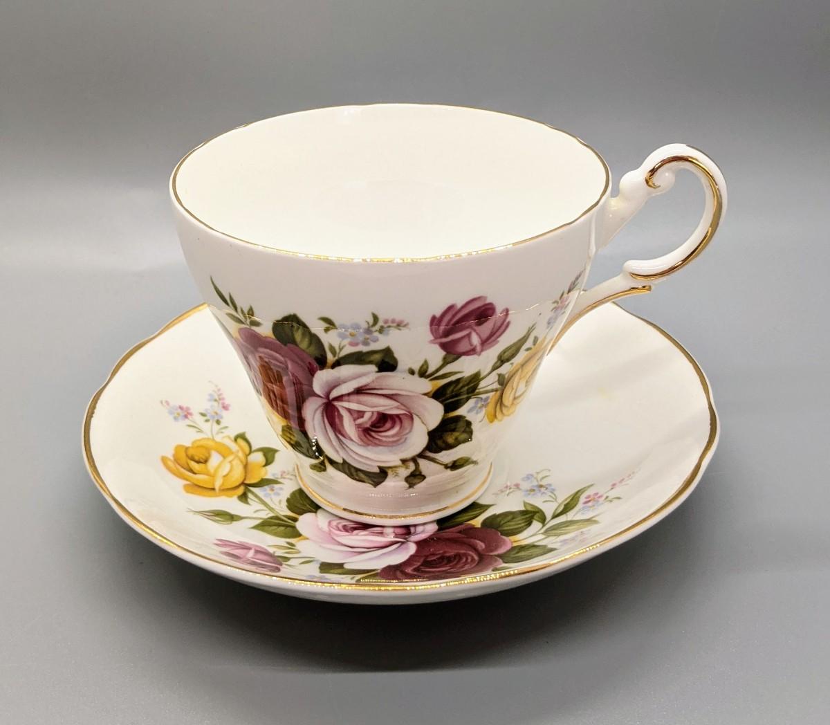 Vintage bone china English tea cup and saucer Regency brand Roses Magenta Pink Yellow