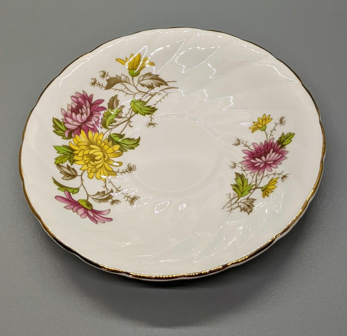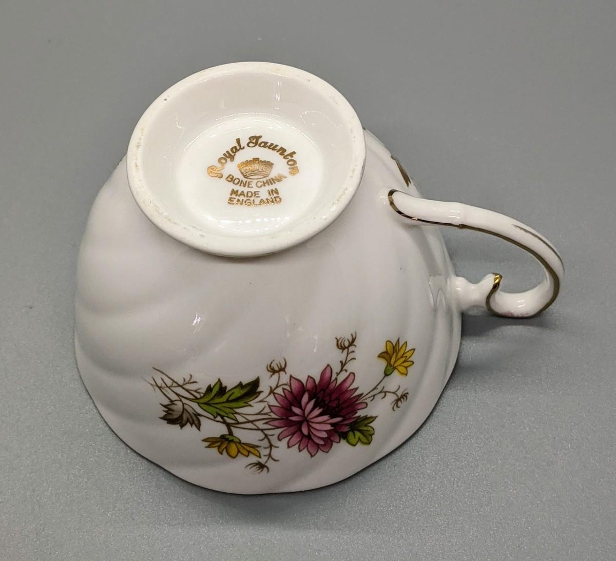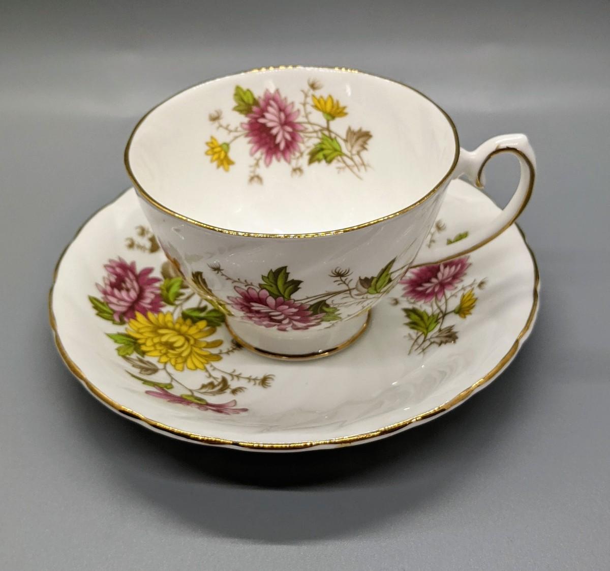 Vintage bone china English tea cup and saucer Royal Taunton brand Pink Yellow asters