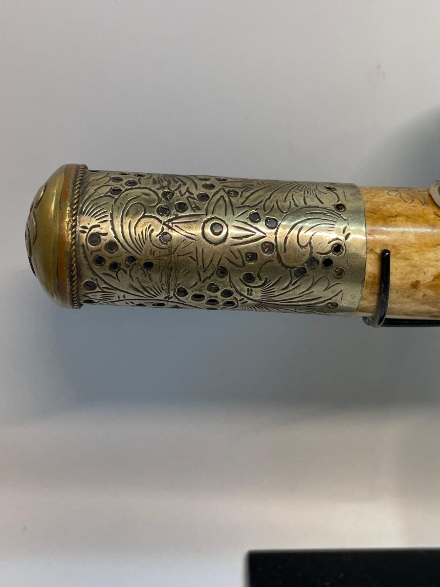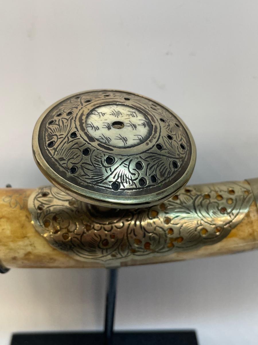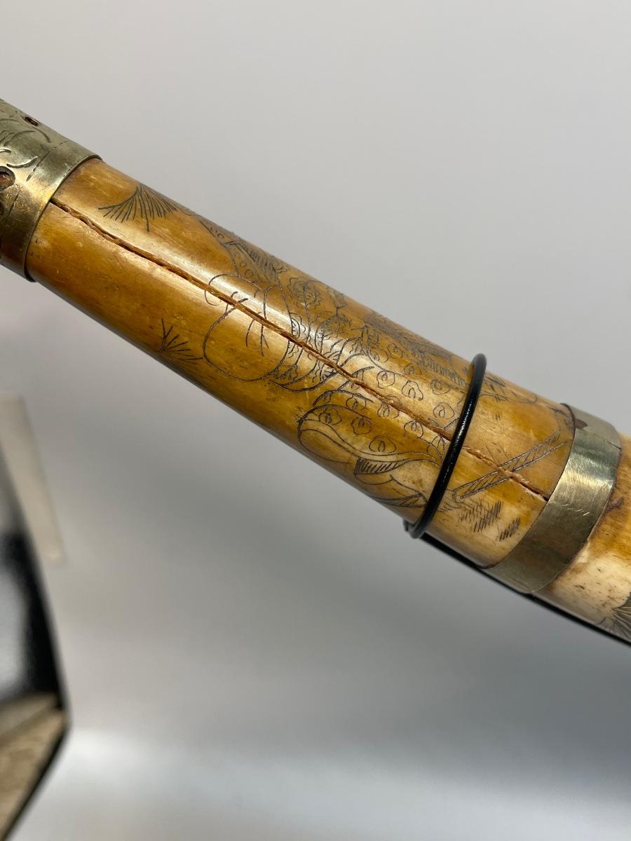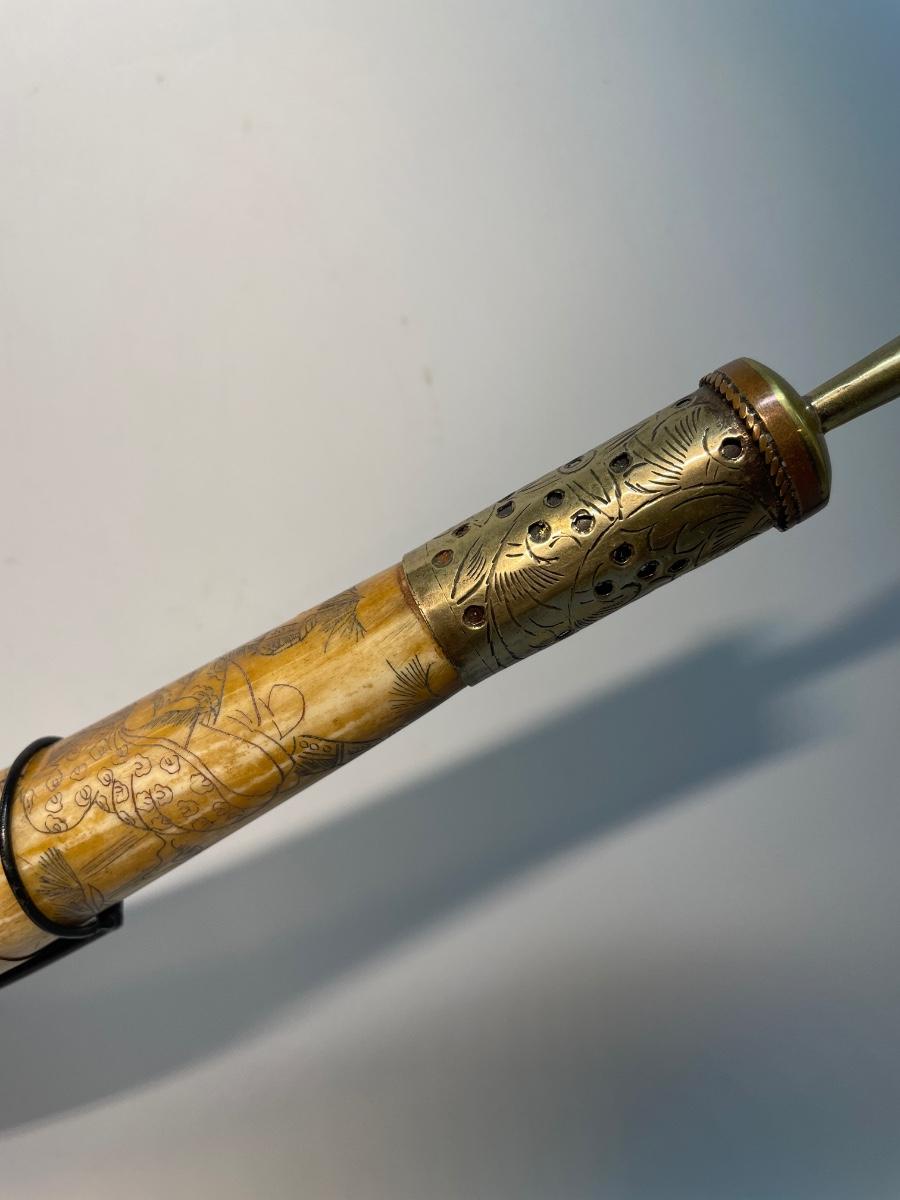 Pipe is 17” long. When on stand 9.5”high. Beautiful etching on this pipe.