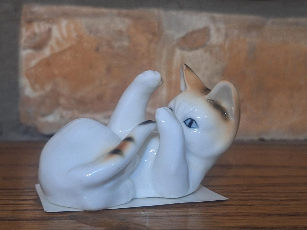 vintage bone porcelain or china cat figurine- 1970s